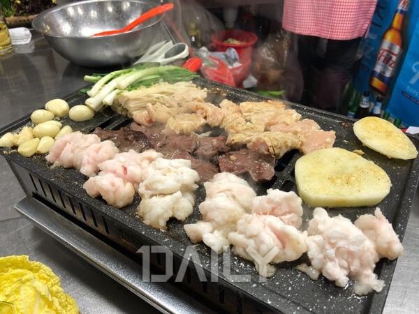 ÁÖ¹®°ú µ¿½Ã¿¡ ±âº»ÂùÀ¸·Î ½Ó ä¼Ò, ¼Ò½º, °íÃßÁö¸¦ ³»¾îÁִµ¥, ƯÈ÷ ½Ó ä¼Ò°¡ Ưº°ÇÏ´Ù. »óÃß, ¹èÃß, ²¢ÀÙ, ¾¦°«, ´ç±Ù µî ´Ù¾çÇÑ ½Ó ä¼Ò¸¦ Á¦°øÇϸç, ºÒÆÇ À§¿¡ °í±¸¸¶¿Í ¸¶´Ã, ÂÊÆÄ, ÆØÀ̹ö¼¸±îÁö ¿Ã·ÁÁØ´Ù. ´Ù¾çÇÑ ºÎÀ§¸¦ Áñ±æ ¼ö ÀÖ´Â ¡®¸ðµÒ ¸Þ´º¡¯¸¦ ¸¹ÀÌ Ã£´Âµ¥, ´ëâ, ¼Òâ, ¸·Ã¢, °öâ, ¿°Åë ÃÑ 5°¡Áö ºÎÀ§¸¦ ´ÙÁø ¸¶´Ã ±â¸§Àå¿¡ ¹ö¹«·Á ³ª¿Í µ¶Æ¯ÇÑ ¸À°ú dz¹Ì¸¦ ÀÚ¶ûÇÑ´Ù. Àç·áµéÀÌ ¿ö³« ½Å¼±ÇØ Â̱êÇÑ ½Ä°¨°ú Àâ³»µµ ¾øÀ¸¸ç, À̸ð´ÔµéÀÌ ÀüºÎ Á÷Á¢ ±¸¿öÁֱ⠶§¹®¿¡ ¸Ô±â ÆíÇÏ´Ù. °í±â¸¦ ´Ù ¸Ô°í ³ª¸é Àοø ¼ö´ë·Î ±èÄ¡·Î ½Ñ ÁÖ¸Ô¹äÀ» ¿Ã·ÁÁִµ¥ ÀÌ°Ô ¶Ç º°¹Ì´Ù. ¸ÅÄÞÇÑ ±èÄ¡°¡ ´À³¢ÇØÁø ¼ÓÀ» ±ò²ûÇÏ°Ô Àâ¾ÆÁà È®½ÇÇÑ ¸¶¹«¸®¸¦ ´ã´çÇÑ´Ù.