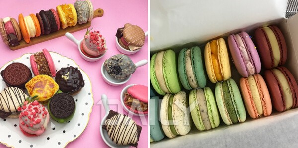 ¡®¼Ø¼Øº£ÀÌÄ¿¸®¡¯´Â ¾Ï»çµ¿¿¡ À§Ä¡ÇÑ ÀÛÀº ¸¶Ä«·Õ Àü¹®Á¡À¸·Î, ¹øÈ°¡°¡ ¾Æ´Ô¿¡µµ Àü±¹¿¡¼ ã¾Æ¿À´Â ¼Õ´Ôµé·Î °¡°Ô ¾ÕÀº ´Ã ºÐÁÖÇÏ´Ù. ¿ÀÇ ÀüºÎÅÍ ±â´Ù¸®´Â ¼Õ´Ôµé·Î ¿ÀÇ ÈÄ 1½Ã°£ÀÌ Áö³ª¸é ¸¶Ä«·ÕÀÇ ¸ð½ÀÁ¶Â÷ º¸±â Èûµé´Ù. À̰÷ÀÇ ¸¶Ä«·ÕÀº Àý´ë ÇÑ ÀÔ¿¡ ³ÖÀ» ¼ö ¾ø´Â ¾ÐµµÀûÀÎ Å©±â¸¦ ÀÚ¶ûÇϴµ¥, ¸¶Ä«·Õ ¼Ó ÇʸµÀÌ ¶×¶×ÇÏ´Ï ³Ê¹«³ªµµ µÎ²¨¿ö¼ ÀÏ¸í ¶×Ä«·ÕÀ¸·Î ºÒ¸°´Ù. ¾çµµ ÇýÀÚÁö¸¸ À̰÷Àº °¡Àå Å« ÀåÁ¡Àº ÂøÇÑ °¡°Ý. 1°³¿¡ 2,000¿øÀ¸·Î ´Ù¸¥ ¸¶Ä«·Õ Àü¹®Á¡ º¸´Ù ÈξÀ Àú·ÅÇÑ °¡°Ý¿¡ ±¸¸ÅÇÒ ¼ö ÀÖ´Ù. Çʸµ¿¡ µÅÁö¹Ù ¾ÆÀ̽ºÅ©¸² Å©·±Ä¡·Î µ¥ÄÚÇÑ ¡®µÅÁö¹Ù¡¯¿Í Åõ°Ô´õ ¹Ù´Ò¶ó ¾ÆÀ̽ºÅ©¸²À¸·Î ¸ÀÀ» ³½ ¡®Åõ°Ô´õ ¹Ù´Ò¶ó¡¯, Å©¸²Ä¡Á µë»Ò ³ÖÀº ¡®·¹µå º§ºª¡¯ÀÌ °¡Àå À¯¸íÇÏ´Ù.