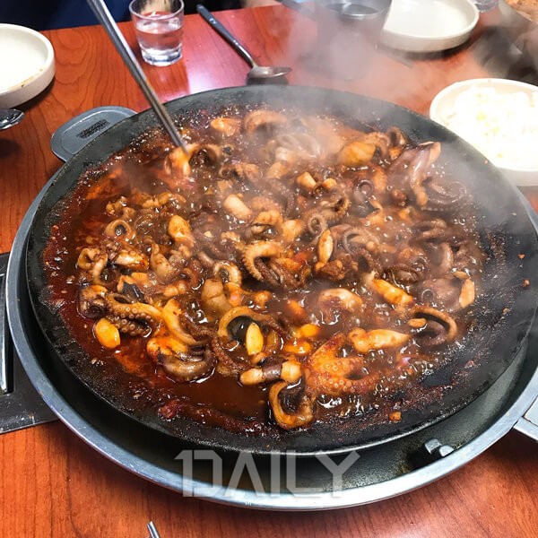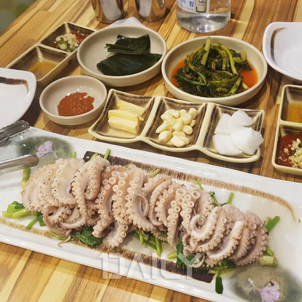 ¾ËÀÌ ²Ë Âù ÂÞ²Ù¹Ì ¸öÅë°ú ÁøÇÑ ±¹¹° ¼Ó¿¡ ¹Ú¼ÓÀ» ³Ö°í ²ú¿©³» ½Ã¿øÇÑ ±¹¹°ÀÌ ÀÏǰÀÎ Â޲ٹ̿¬Æ÷ÅÁÀ» Áñ±æ ¼ö ÀÖ´Â °÷. µ¿¹¦¿¡¼ À¯¸íÇÑ ÂÞ²Ù¹Ì ¿¬Æ÷ÅÁ ¸ÀÁýÀ¸·Î, °íÈï ¹Ù´Ù¿¡¼ Á÷Á¢ °ø¼öÇÑ ÁøÂ¥¹è±â Áֲٹ̸¸ »ç¿ëÇÑ´Ù. °¡°Ô ¾È¿¡ ³õÀÎ ¼öÁ¶¿¡´Â ²ÞƲ ²ÞƲ »ì¾Æ ¿òÁ÷ÀÌ´Â Â޲ٹ̷Π°¡µæ ä¿öÁ® ÀÖ´Ù. ¸ðµÎ °íÈï »êÁö¿¡¼ Á÷Á¢ °ø¼öÇØ Àç·á°¡ ¿ö³« ½Å¼±ÇØ ¹Ï°í ¸ÔÀ» ¼ö ÀÖ´Â °÷ÀÌ´Ù.