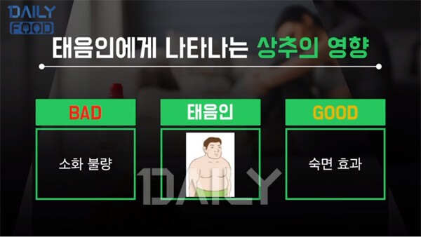 »óÃß°¡ Á¹À½À» À¯¹ßÇÏ´Â °ÍÀº »ç½ÇÀÌÁö¸¸, üÁú¿¡ µû¶ó »óÃßÀÇ ¿µÇâÀÌ ´Ù¸£°Ô ³ªÅ¸³¯ ¼ö ÀÖ´Ù. »ç¶÷ÀÇ Ã¼ÁúÀº žçÀÎ, ÅÂÀ½ÀÎ, ¼Ò¾çÀÎ, ¼ÒÀ½ÀÎÀ¸·Î ³ª´ ¼ö Àִµ¥, ¸öÀÌ »¡¸® ÇÇ·ÎÇØÁö´Â ÅÂÀ½ÀÎÀº »óÃßÀÇ ¼ººÐ ¶§¹®¿¡ ½±°Ô ÀáÀÌ ¿Ã ¼ö ÀÖ´Ù. ±×·¯³ª »óÃ߸¦ °ú´Ù ¼·ÃëÇÒ °æ¿ì ¼ÒȺҷ®°ú °°Àº ºÎÀÛ¿ëÀÌ ³ªÅ¸³¯ ¼ö ÀÖÀ¸¹Ç·Î Àû´ç·®À» ¼·ÃëÇÏ´Â °ÍÀÌ ÁÁ´Ù.