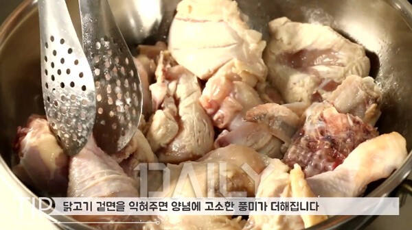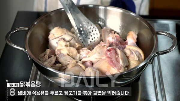 8. ³¿ºñ¿¡ ½Ä¿ëÀ¯¸¦ µÎ¸£°í ´ß°í±â¸¦ ºº¾Æ °Ñ¸éÀ» ÀÍÇôÁØ´Ù.