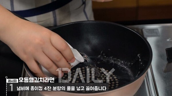 °¡Àå ¸ÕÀú Á¾ÀÌÄÅ 4ÀÜ ºÐ·®ÀÇ ¹°À» ³Ö¾îÁØ´Ù. ÀÏ¹Ý ¶ó¸éº¸´Ù ´Ù¸¥ Àç·á°¡ ´õ ¸¹ÀÌ µé¾î°¡±â ¶§¹®¿¡ º¸Åë ¶ó¸éÀ» ²úÀÏ ¶§ º¸´Ù ¹°À» ´õ ³Ö¾îÁÙ Çʿ䰡 ÀÖ´Ù.