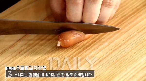 ¼Ò½ÃÁö¿¡ ¾à°£ÀÇ Ä®ÁýÀ» ³Ö¾îÁØ´Ù. ¼Ò½ÃÁöµµ ±èÄ¡¿Í ¸¶Âù°¡Áö·Î Á¾ÀÌÄÅ ¹Ý ÀÜ ºÐ·®À¸·Î ÁغñÇÑ´Ù.