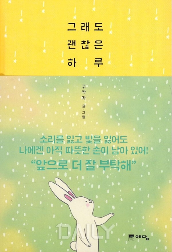 ½É±ÝÀ» ¿ï¸®´Â °¨µ¿ÀûÀÎ ÀÏ·¯½ºÆ® ¿¡¼¼ÀÌ, <±×·¡µµ ±¦ÂúÀº ÇÏ·ç>´Â û·ÂÀ» ÀÒ°í Á¡Â÷ ½Ã·Â±îÁö ÀҾ°í ÀÖ´Â ÀÛ°¡ÀÇ À̾߱⸦ ±×·È´Ù. ±Í¿©¿î Åä³¢, º£´Ï¿¡°Ô ÀÛ°¡ ÀÚ½ÅÀ» Åõ¿µ½ÃÄÑ ÀÚ½ÅÀÇ Æ¯º°ÇÑ ¹öŶ¸®½ºÆ®¸¦ Á¤ÇÏ°í ½ÇÇàÇÑ´Ù. ÀϹÝÀÎÀÌ º¸¸é Ưº°ÇÒ °Í ¾ø´Â Æò¹üÇÑ ÀÏ»óó·³ º¸ÀÏ ¼ö ÀÖ°ÚÁö¸¸ ÀÛ°¡¿¡°Õ Áö±ÝÀÌ¶ó °¡´ÉÇÑ, Àý½ÇÇÑ ¹öŶ¸®½ºÆ®ÀÎ ¼ÀÀÌ´Ù. ¿ì¸®´Â ¾Æ¹«°Íµµ ¾Æ´Ñ ÀÏ»ó, ¾îÁ¦¿Í ´Ù¸¦ ¹Ù ¾ø´Â Æò¹üÇÑ ¿À´Ã¿¡ ´ëÇÑ °í¸¶¿òÀ» ¸ð¸£°í Áö³»´Â °æ¿ì°¡ ¸¹´Ù. ÇÏÁö¸¸ Ã¥À» Àд٠º¸¸é ¼Ò¼ÒÇÑ ÀÏ»ó¿¡ ´ëÇÑ °¨»çÇÑ ¸¶À½, ³»ÀÏ¿¡ ´ëÇÑ ±â´ë°¨À» ´À²¸º¼ ¼ö ÀÖÀ» °ÍÀÌ´Ù.