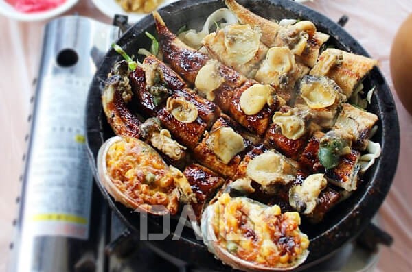 ¸Àµµ °Ç°µµ µ¿½Ã¿¡ ì±æ ¼ö ÀÖ´Â Àå¾î ½¡ºÒ±¸ÀÌ ¸ÀÁýÀ¸·Î °Èµµ °¹¹ú¿¡¼ Ű¿ì´Â Àå¾î¸¦ ¸Àº¼ ¼ö ÀÖ´Ù. ÀÏ¹Ý ¹Î¹° Àå¾î¿Í´Â È®½ÇÈ÷ ´Ù¸¥ źźÇÑ ½Ä°¨°ú À°Áú¿¡ ÀÌ Áý¸¸ÀÇ ºñ¹ý ¾ç³äÀÌ ´õÇØÁ® °¨Ä¥¸ÀÀ» µ¸¿î´Ù. ƯÈ÷ ÀÌ ºñ¹ý ¾ç³äÀº ÇÑ TV ÇÁ·Î±×·¥¿¡¼ ¿ì½ÂÀ» ÇÒ ¼ö ÀÖ°Ô²û ÇÑ °íÃßÀå ¾ç³äÀ¸·Î »ö´Ù¸§ÀÌ ´À²¸Áø´Ù. Àå¾î¸¦ ÁÖ¹®Çϸé ÇÑ »ó °¡µæ ¹Ø¹ÝÂùÀÌ Ã¤¿öÁö´Âµ¥ Àå¾î±¸ÀÌ¿Í ÇÔ²² ½Î ¸ÔÀ» ¼ö ÀÖ´Â ½Ó ä¼Ò¿Í ½Ó¹«¸¦ ºñ·ÔÇØ ´Ù¾çÇÑ ±èÄ¡ Á¾·ù, ¶Ç Àå¾î »ìÀ» ¹ß¶ó³»°í ³²Àº »À¸¦ Æ¢°Ü³½ µ¶Æ¯ÇÑ ¿ä¸®µµ ¸Àº¼ ¼ö ÀÖ´Ù.