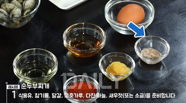 ¿ì¼± º¸µéº¸µéÇÑ ½Ä°¨ÀÌ ÀÏǰÀÎ ¼øµÎºÎ¸¦ ¸¸µé±â À§ÇÑ Àç·á¸¦ ÁغñÇÑ´Ù. ¼øµÎºÎ 400g, ¹ÙÁö¶ô 150g, ÂüŸ¸® ¹ö¼¸ 50g, ´ëÆÄ 1/2°³, ¾çÆÄ 1/2°³, ½Ä¿ëÀ¯, Âü±â¸§, ´Þ°¿, °íÃå°¡·ç, ´ÙÁø ¸¶´Ã, »õ¿ìÁ£(¶Ç´Â ¼Ò±Ý)À» ÁغñÇÑ´Ù.