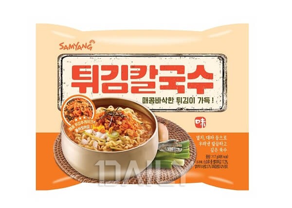 »ï¾ç½ÄǰÀÇ ¡®Æ¢±è Ä®±¹¼ö¡¯ ¿ª½Ã ¿¾³¯ °ÍÀ» ´Ù½Ã Ãâ½ÃÇÑ ½Äǰ°èÀÇ ´ºÆ®·Î Á¦Ç°ÀÌ´Ù. 1970³â¿¡¼ 80³â´ëÀÇ ·Î°í¿¡ ¾²ÀÎ ¼Ã¼¸¦ ±×´ë·Î Àû¿ëÇÑ µðÀÚÀÎÀ¸·Î ´Ù½Ã±Ý ÁÖ¸ñ¹Þ°í ÀÖ´Ù. Ä®±¹¼ö¿¡ Æ¢±è °í¸íÀ» ¾ñ°í ¸ÅÄÞÇÑ °íÃå°¡·ç·Î ¹ö¹«·Á ĮĮÇÑ ¸ÀÀ» ´õÇÑ °ÍÀÌ Æ¯Â¡ÀÌ´Ù. ¿¾ ¼¼´ëÀÇ Çâ¼ö¸¦ ÀÚ±ØÇϸç Àα⸮¿¡ ÆÇ¸ÅµÇ°í ÀÖ´Â Á¦Ç°À¸·Î ¼ÒºñÀÚµéÀÇ ¸¹Àº °ü½ÉÀ» ¹Þ°í ÀÖ´Ù.