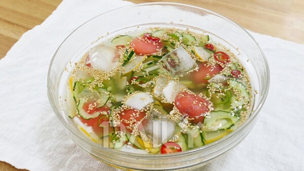 µ¿Ä¡¹Ì¿Í´Â ¶Ç ´Ù¸¥ ¸ÀÀ» ³»´Â ¿©¸§Ã¶ ¹°±èÄ¡, ¿©¸§ º°¹Ì Áß ºüÁöÁö ¾Ê´Â ¸Þ´ºÀ̱⵵ ÇÏ´Ù. º¸Åë ¹«¿Í ¹èÃ߸¦ ÀÌ¿ëÇÏÁö¸¸ Âü¿Ü¿Í Á¦Ã¶°úÀÏÀ» ÀÌ¿ëÇØ¼ Èä ºñÁÖ¾óÀÇ ¹°±èÄ¡¸¦ ¸¸µé ¼ö ÀÖ´Ù. ¾¾¸¦ Á¦°ÅÇÑ Âü¿Ü¿Í ¹«¸£Áö ¾Ê´Â ´Ü´ÜÇÑ °úÀÏÀº ¸Ô±â ÁÁÀº Å©±â·Î ½ä°Å³ª ´©¸§Æ²À» ÀÌ¿ëÇØ ¿¹»Û ¸ð¾çÀ¸·Î ÁغñÇÑ´Ù. ¹° 5ÄÅ¿¡ ¾çÆÄ ¹ÝÂÊ, ¸¶´Ã 5¾Ë, ¼³ÅÁ 1½ºÇ¬, ¸Å½Çû°ú ¼Ò±Ý °¢ 3½ºÇ¬À» ¹Í¼±â¿¡ °¥°í ÁغñÇØµÐ °úÀϰú ¼¯¾îÁØ ´ÙÀ½ ¹Ý³ªÀý Á¤µµ ¼÷¼º½ÃÄÑÁÖ¸é »õÄÞÇϸ鼵µ °³¿îÇÑ Âü¿Ü °úÀÏ ¹°±èÄ¡°¡ ¿Ï¼ºµÈ´Ù.