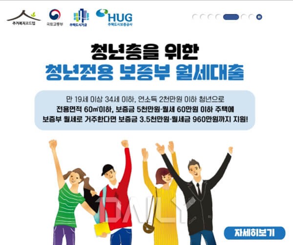 ¸¸ 19¼¼ ÀÌ»ó 25¼¼ ¹Ì¸¸ÀÇ Ã»³âÀÌ ¼¼´ëÁÖ·Î ¹«ÁÖÅÃÀÚÀÏ ¶§ Áö¿ø¹ÞÀ» ¼ö ÀÖ´Ù. Áý °è¾àÀ» ÇÑ ÈÄ 3°³¿ù À̳»¿¡ ´ëÃâ½ÅûÀ» ÇÏ°í ±âÇÑ ¿¬ÀåÀÌ 4ȸ·Î ÃÖÀå 10³â Á¤µµ ÀÌ¿ë °¡´ÉÇÏ´Ù. ¹ÞÀ» ¼ö ÀÖ´Â ÀÚ±ÝÀº ÃÖ´ë 3õ 5¹é¸¸ ¿øÀÌ ÇѵµÀÌ¸ç ±Ý¸® 2.3~2.7% Á¤µµ·Î Â÷µî Àû¿ëµÇ´Â °ÍÀÌ Æ¯Â¡ÀÌ´Ù. ½Åû °¡´ÉÇÑ ÀºÇà¿¡ ¹æ¹®ÇÏ¿© »ó´ãÀ» ¹Þ°í ½ÅûÇÏ´Â °ÍÀÌ ÁÁ´Ù.