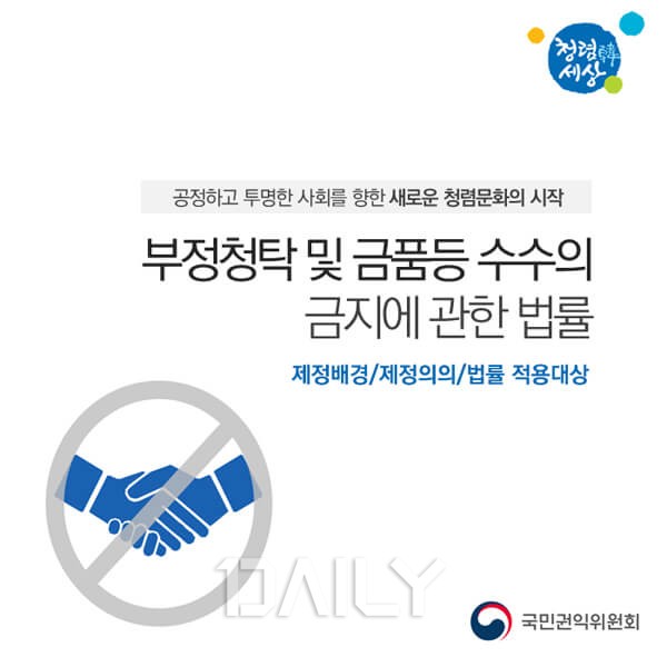 ¡¸ºÎÁ¤Ã»Å¹ ¹× ±Ýǰµî ¼ö¼öÀÇ ±ÝÁö¿¡ °üÇÑ ¹ý·ü¡¹(ÀÌÇÏ ¡°Ã»Å¹±ÝÁö¹ý¡±À̶ó ÇÔ)¿¡¼´Â Á÷¹«°ü·Ã¼ºÀÌ ÀÖÀ» °æ¿ì, ¾î¶² ÇüÅÂÀÇ ±Ýǰ¼ö¼öµµ ±ÝÁöµÈ´Ù. ´Ù¸¸, ¿øÈ°ÇÑ Á÷¹«¼öÇà, »ç±³¡¤ÀÇ·Ê, ºÎÁ¶ Â÷¿ø¿¡¼ÀÇ À½½Ä¹°, ¼±¹°, °æÁ¶»çºñ µî¿¡ ´ëÇØ¼´Â ¿ì¸® »çȸ°¡ Çã¿ëÇÒ ¸¸ÇÑ ÃÖ¼ÒÇÑÀÇ °¡¾× ±âÁØÀ» Á¤Çϰí ÀÖ´Ù. ¿øÈ°ÇÑ Á÷¹«¼öÇà ¶Ç´Â »ç±³¡¤ÀÇ·Ê ¶Ç´Â ºÎÁ¶ÀÇ ¸ñÀûÀ¸·Î Á¦°øµÇ´Â 3¸¸ ¿ø ÀÌÇÏ À½½Ä¹°¡¤5¸¸ ¿ø ÀÌÇÏ ¼±¹°(´Ù¸¸, ³ó¼ö»ê¹° ¹× ³ó¼ö»ê°¡°øÇ°Àº 10¸¸¿ø)¡¤5¸¸ ¿ø ÀÌÇÏ °æÁ¶»çºñ(´Ù¸¸, ÃàÀDZݡ¤Á¶ÀDZÝÀ» ´ë½ÅÇÏ´Â Èȯ¡¤Á¶È´Â 10¸¸¿ø) µîÀº ¼ö¼ö¸¦ ±ÝÁöÇÏ´Â ±Ýǰ µî¿¡ ÇØ´çÇÏÁö ¾Ê´Â´Ù. µû¶ó¼ ±è¿µ¶õ¹ýÀÇ Àû¿ë ´ë»óÀÚÀÇ °áÈ¥½Ä¿¡¼´Â ÀÌ·¯ÇÑ °¡¾× ³»¿¡¼ ÃàÀDZÝÀ» ÁöºÒÇØ¾ß ÇÑ´Ù.