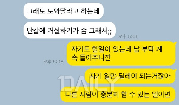 ´ëȸ¦ ÇÒ ¶§µµ ´Ù¸¥ »ç¶÷ÀÇ À̾߱⸸ µé¾îÁÖ°í ¸®¾×¼ÇÀ» º¸¿©ÁÖ´À¶ó Á¤ÀÛ ÀÚ½ÅÀÇ ¸»Àº ²¨³»Áöµµ ¸øÇÏ´Â »ç¶÷µéÀº »ó´ë¹æÀÌ ºÎŹÀ» ÇØ¿À¸é ÀÌ ¿ª½Ã Á¦´ë·Î µÈ °ÅÀýÇÏÁö ¸øÇÏ°í °á±¹ ºÎŹÀ» µé¾îÁÖ°Ô µÈ´Ù. ½Ã°£ÀûÀÎ ¿©À¯°¡ Àְųª ÃæºÐÈ÷ ÇØÁ൵ µÉ ÀÏÀ̶ó¸é »ó°ü¾ø°ÚÁö¸¸ ´Ù¸¥ »ç¶÷ÀÇ ºÎŹ ¶§¹®¿¡ º»ÀÎÀÇ ÇØ¾ß ÇÒ ÀÏÀ» ³õÄ£´Ù¸é À̰ÍÀº ºÐ¸íÈ÷ À߸øµÈ °ÍÀÌ´Ù. ¡®µµ¿Íµå¸®°í ½ÍÁö¸¸ Á¦°¡ Àß ¸ð¸£´Â ºÎºÐÀÌ¶ó ±¦È÷ µµ¿Íµå·È´Ù°¡ ÀÏÀ» ¸ÁÄ¥ °Í °°´Ù¡¯¶ó°í °ÅÀýÇÑ´Ù¸é »ó´ë¹æÀÇ ±âºÐÀ» ³ª»ÚÁö ¾Ê°Ô ÇÏ¸é¼ ¿¹ÀÇ ¹Ù¸£°Ô °ÅÀýÇÒ ¼ö ÀÖ´Ù.