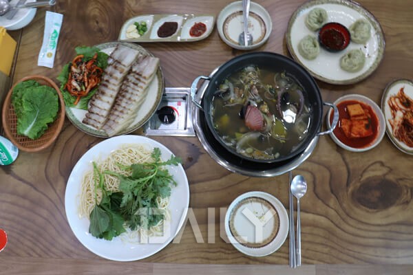 ¹é»çÀå Æ÷±¸ ÀÔ±¸¿¡¼ Á÷Á¢ ÀâÀº Å« Á¶°³¸¦ ³ÖÀº ½Ã¿øÇÑ ±¹¹°ÀÇ Ä®±¹¼ö¿Í ½Å¼±ÇÑ È¸µ¤¹äÀ» ³»´Â ÇѽĴçÀÌ´Ù. »Ç¾é°Ô ¿ì·¯³ ±¹¹°¿¡ Å©°í ÀÛÀº Á¶°³°¡ °¡µæ Àá°Ü Àִµ¥ °¡¿îµ¥ °®Àº ä¼Ò¸¦ ǰ°í ÀÔÀ» Å©°Ô ¹ú¸®°í ÀÖ´Â Å« Á¶°³°¡ ´Ü¿¬ È·æÁ¡Á¤. Â̱êÇÑ ¼Ó»ìÀ» ¹ß¶ó °³¿îÇÏ°í ½Ã¿øÇÑ ±¹¹°ÀÌ ¹ê ¸é°ú ÇÔ²² ¸ÔÀ¸¸é µÈ´Ù. ȸµ¤¹ä¿¡µµ ½Å¼±ÇÑ È¸°¡ µë»Ò µé¾îÀÖ´Â Æí. À̺¥Æ®·Î ¸Àº¸±â ÇØÀå±¹°ú 2¸íÀ̼ ¸ÔÀ» ¼ö ÀÖ´Â Ä®±¹¼ö, ȸµ¤¹äÀ» 17,000¿ø¿¡ Á¦°øÇÏ´Â Çà»çµµ ÁøÇàÇÑ´Ù.