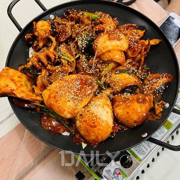 ¾È¸éµµ ÇöÁöÀεéÀÌ Ã£´Â´Ù´Â °©¿À¡¾î ºÒ°í±â ¸ÀÁýÀÌ´Ù. ÅëÅëÇÏ°Ô »ì ¿À¸¥ Åë°©¿À¡¾î¿Í µÅÁö°í±â¸¦ »¡°²°í ²Ù´ö²Ù´öÇÑ ¾ç³ä¿¡ ºº¾Ò´Ù. µµÅ丮¹¬, ¿¹«±èÄ¡, ¹«¸»·©ÀÌ µîÀÇ °£´ÜÇÑ ¹Ø¹ÝÂùÀÌ Á¦°øµÇ¸ç ÇÔ²² ³ª¿À´Â ½Ó ä¼Ò¿¡ °©¿À¡¾î¸¦ ¾ñ¾î ½ÓÀ¸·Î ½Î¸Ô´Â´Ù. Å×ÀÌºí¿¡ °¡½º¹ö³Ê¸¦ ¿Ã¸®°í ¼®¼èÆÇÀ» ´Þ±Å Á¹¿© ¸Ô´Âµ¥ °©¿À¡¾î´Â °ÅÀÇ Åë°·Î ³ª¿À±â¿¡ ÃëÇⲯ ¸Ô±â ÁÁ°Ô Àß¶ó¸ÔÀ¸¸é µÈ´Ù°í. ³²Àº ¾ç³ä¿¡ Ä¡Áî¿Í ±è°¡·ç¸¦ ³Ö¾î ººÀ½¹ä±îÁö ¸ÔÀ¸¸é ǪÁüÇÑ ÇÑ ³¢°¡ ¿Ï¼ºÀÌ´Ù.