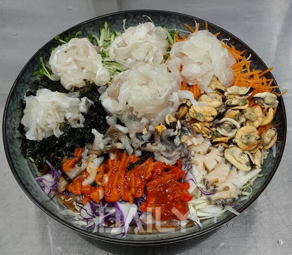 Á¦ÁÖ¿¡¼ ¸ÅÀÏ Ç×°øÀ¸·Î Á÷¼Û ¹Þ´Â ÇØ»ê¹°·Î ´Ù¾çÇÑ Á¾·ùÀÇ ¹°È¸¿Í ÇØ¹°·ù¸¦ ³»´Â °÷ÀÌ´Ù. ÀÚ¸®µ¼, ÇÑÄ¡, Âü¼Ò¶ó, Àüº¹, È«ÇØ»ï, »ý±¼, ¸ðµÒ ¹°È¸ µîÀÌ ÀÖÀ¸¸ç ±×Áß °¡Àå À¯¸í¼¼¸¦ Ä¡¸£´Â °ÍÀº Àüº¹ ¹°È¸. TVN ¼ö¿ä¹Ì½Äȸ¿¡ Àüº¹Çع°ÅÁÀÌ µîÀåÇÏ¸ç ´õ¿í ã´Â »ç¶÷µéÀÌ ¸¹¾ÆÁ³´Ù°í. ¿À¸ñÇÑ ±×¸© ¾È¿¡ °®Àº ä¼Ò°¡ dz¼ºÇÏ°Ô µé¾îÀÖ°í ±× À§¿¡ ²¿µæ²¿µæ °áÀ» »ì·Á ȸ¸¦ Ä£ Àüº¹ÀÌ ÇѰ¡µæ ¿Ã¶ú´Ù. ½Å¼±ÇÑ Àüº¹À» ¸Ô±â ÁÁÀº µÎ²²·Î ½ä¾î ǪÁüÇÏ°Ô Ç÷¹ÀÌÆÃ ÇØ ºñÁÖ¾ó°ú ¸À ¸ðµÎ Àâ¾Ò´Ù.