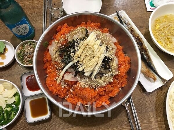 °¿øµµ °í¼º±ºÀÇ Ã»Á¤ÇØ¿ª¿¡¼ »õº®¿¡ Á÷Á¢ Àâ¾Æ¿À´Â ½Ì½ÌÇÑ È°¾î¸¦ °í¼º±º Á×¿Õ¸é ¼öÇù ÁÖ°üÇÏ¿¡ ÀÔÂûÇØ ¹Þ¾Æ¿À´Â °÷ÀÌ´Ù. ´çÀÏ °ø±ÞµÇ´Â Ƚ°¨¿¡ µû¶ó ¸ÅÀÏ Á¶±Ý¾¿ ´Ù¸¥ ¸Þ´º°¡ Ư¡. 100% ÀÚ¿¬»ê Àç·á·Î °í¼º °¡ÁøÇ׿¡¼ Àâ¾Æ¿À´Â Àç·á·Î ¸¸µå´Â °¡ÁøÇ× ¹°È¸´Â 2ÀÎ ÀÌ»ó ÁÖ¹®ÀÌ °¡´ÉÇÏ¸ç ¼ºñ½º·Î ³ª¿À´Â ¾ãÀº ÀüÀ» ¸Ô´Ù º¸¸é ¾óÀ½ÀÌ µ¿µ¿ ¶á À°¼ö¿¡ ³Ë³ËÇÑ ÀÚ¿¬»ê Ƚ°¨, °®Àº ÇØ¹°, ä¼Ò¸¦ ¾ñÀº ǪÁüÇÑ ¹°È¸°¡ ³ª¿Â´Ù. ¼Ò¸éÀ» ³Ö¾î¼ ¸ÔÀ¸¸é ½Ã¿øÇÏ°íµµ »õÄÞÇÑ ¸À¿¡ ÀÔ¸ÀÀÌ µ·´Ù.