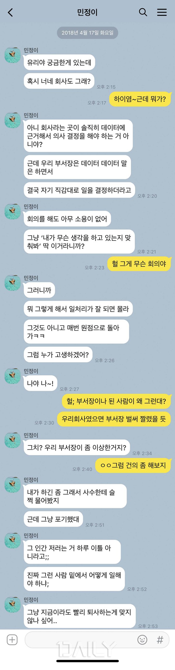 Ãë¾÷À» Çϱâ Àü Àϻ󿡼 ´À³¢´Â º¸ÅëÀÇ ÀÇ»ç°áÁ¤Àº ´ëºÎºÐ ÀÚÀ²ÀûÀ̾ú´Ù. ÀÇ»ç °áÁ¤¿¡ ÀÖ¾î¼ ¾î·Á¿î ºÎºÐÀÌ ÀÖ´õ¶óµµ ÆòµîÇÑ °ü°è¿¡¼ ÇÕ¸®ÀûÀÎ ¹æ¹ý°ú ´ëȸ¦ ÅëÇØ È¿À²ÀûÀÎ °á°ú µµÃâÀ» À̲ø¾î³Â´Ù. ±×·±µ¥ ¸·»ó ȸ»ç¿¡¼´Â ±×·± ºÐÀ§±â¸¦ ´À³¢±â°¡ Èûµé¾ú´Ù. ¼öÆòº¸´Ù´Â ¼öÁ÷ÀûÀÎ ±¸Á¶¿¡ »ó»ç¿Í´Â ´Ù¸¥ ÀǰßÀ» Á¦½ÃÇϰųª ºÒ¸¸À» Á¦±âÇÏ´Â °ÍÀº »ó»óÇÒ ¼ö°¡ ¾ø¾ú´Ù. ¾ÆÁ÷ Àß ¸ð¸£´Â ½ÅÀÔ»ç¿øÀÌ ºÁµµ ±²ÀåÈ÷ ºñÈ¿À²ÀûÀÎ ÀÇ»ç°áÁ¤±¸Á¶ÀÓ¿¡µµ ºÒ±¸Çϰí Áö±Ý±îÁöÀÇ ±×·¡¿Ôµí °üÇàó·³ ÀÌ·ç¾îÁö´Â ±¸Á¶, °³¼±ÇÒ ¿©ÁöÁ¶Â÷ º¸ÀÌÁö ¾Ê¾Æ ±× ±¸Á¶¸¦ º¯È½ÃŰ°í ³ë·ÂÇÏ´À´Ï Â÷¶ó¸® ÀÌÁ÷ÇÏ´Â °Ô ´õ ºü¸¦ °Í °°¾Æ Åð»ç¸¦ ÁغñÇÑ´Ù.