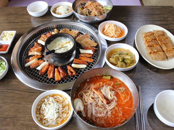 ƯÇã Ãâ¿øÀ» ÇÑ ¸Å½Çû »ý û±¹Àå ¿ä¸® Àü¹®Á¡ÀÌ´Ù. ¸Å½Ç°ú °ËÁ¤Äá°¡·ç¸¦ ¼¯¾î º²Â¤À¸·Î ¿«Àº ´ÙÀ½ ½¡ ȲÅ乿¿¡¼ ÀüÅë ¹æ½ÄÀ¸·Î ¹ßÈ¿½ÃÄÑ ³½´Ù°í. û±¹ÀåÀ» ±âº»À¸·Î ¿¬ÀÙ¹ä°ú ´ç±Í¼Ò½º ä¼Ò¹«Ä§, ¹æ¾ÆÀÙ ´ß±¸ÀÌ µî ÄÚ½º¿ä¸®°¡ ÇÔ²² ³ª¿À´Â Á¤½ÄÀÌ ÀÖ´Ù. ±¸¼º¿¡ µû¶ó ÃÊ·Õ, ¹Îµé·¹, ´Þ¸ÂÀÌ, ¿¬²É Á¤½Ä µî 4°¡Áö·Î ³ª´µ¸ç Àã ¸·°É¸®¿Í ¿Àµð ¼ú µî ¿ì¸® ÀüÅë¼úÀ» ¸Àº¼ ¼ö ÀÖ´Ù. ¹ÌÃëÇÐ ¾Æµ¿À» Æ÷ÇÔÇÏ¿© ÁÖ¹®ÇÏÁö ¾ÊÀº ¾î¸°ÀÌ´Â ¼¼ÆÃºñ 2,000¿øÀ» ¹Þ´Â´Ù°í.
