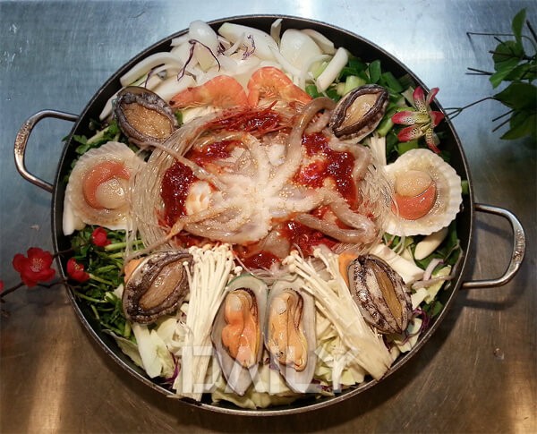 ¼öÁ·°ü¿¡¼ °ñ¶ó³½ ½Ì½ÌÇÑ ÇØ»ê¹°°ú »ê³«Áö »êÀüº¹À¸·Î ±¸¼ºµÈ ÇØ¹° º¸¾ç½ÄÀ¸·Î À¯¸íÇÑ °÷ÀÌ´Ù. ¸ÅÄÞÇÑ Æ¯Á¦ ¾ç³äÀ¸·Î °®Àº ÇØ¹°°ú ǪÁüÇÑ Äᳪ¹°À» Çѵ¥ ²ú¿© ¸Ô´Â öÆÇ Àü°ñ ÇüÅ´Ù. µ¿±×¶þ°í Ä¿´Ù¶õ öÆÇ °¡µæ º¸±Ûº¸±Û À;´Â ǪÁüÇÑ ÇØ»ê¹°ÀÌ ½Ä¿åÀ» ÀÚ±ØÇÑ´Ù. 2ÀÎ, 3ÀÎ, 4ÀÎ µî Àοø¼ö¿¡ µû¶ó ¸Þ´º¸¦ °í¸£¸é µÇ´Âµ¥ ȰÀüº¹°ú »ç¸®, ººÀ½¹ä µî Ãß°¡¸¦ ÇÏ¸é µÇ´Â ¹æ½ÄÀÌ´Ù. ÀÌ ¹Û¿¡ ÇØ¹°°ú ´ß°¥ºñ¸¦ °çµé¿© ¸Ô´Â ÇØ¹° ´ß°¥ºñ¿Í ¿¬Æ÷ÅÁ, µ·°¡½º µî ¸Þ´º ¼±ÅÃÀÇ ÆøÀÌ ³ÐÀº Æí.
