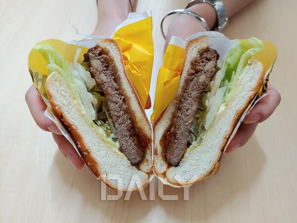 ´ÙÀ½Àº ¸Þ°¡¹ÙÀÌÆ® ¹ö°Å¸¦ ½Ã½ÄÇß´Ù. ´ÜǰÀº 4,300¿ø, ¼¼Æ®´Â 5,900¿øÀÎ ÀÌ ¹ö°ÅÀÇ Æ¯Â¡Àº µÎÅùÇÑ µÎ²²¸¦ ÀÚ¶ûÇÏ´Â ÆÐƼ À§¿¡ ÇØ½Ãºê¶ó¿îÀÌ ¿Ã·ÁÁ® ÀÖ´Ù´Â °ÍÀÌ´Ù. ÇØ½Ãºê¶ó¿îÀ» ³Ê¹«³ªµµ »ç¶ûÇÏ´Â ±âÀÚ¿¡°Ô ¾È¼º¸ÂÃãÀ̾ú´Ù. ¼Ò½º´Â ÃßÁ¤»ó ¸Ó½ºÅ¸µå °°Àºµ¥, ÆÐƼ¿Í ÇØ½Ãºê¶ó¿î ¸ðµÎ¿¡°Ô Àß ¾î¿ï¸®´Â ¼Ò½º¿´´Ù. ±×·¯³ª ¸Ô´Ù º¸¸é ÇØ½Ãºê¶ó¿î¿¡¼ ³ª¿À´Â ±â¸§ÀÌ ¼Õ¿¡ ¹¯¾î Á¶±Ý ¾Æ½¬¿ü´Ù. ¸Þ°¡¹ÙÀÌÆ®´Â ¹ÞÀÚ¸¶ÀÚ µÇµµ·Ï »¡¸® ¸Ô´Â °ÍÀÌ ÁÁÀ» µíÇÏ´Ù. ¼¼Æ®¸¦ ½ÃŰ¸é °°ÀÌ ³ª¿À´Â °¨ÀÚÆ¢±èµµ µÎ²²°¡ µÎ²®°í, ¹Ù»èÇÏ´Ù. °¨ÀÚÆ¢±èÀÇ ¾çÀÌ ¸¹Áö´Â ¾ÊÀºµ¥, ±Ý¼¼ ¹è°¡ ºÎ¸¥ ÀÌÀ¯¸¦ ¾Ë °Í °°´Ù. ³ëºê·£µå ¹ö°Å¸¸ÀÇ ¾Æ¸Þ¸®Ä«³ë ¸ÀÀÌ ±Ã±ÝÇØ ¼¼Æ®¿¡ 500¿øÀ» Ãß°¡ÇØ ¸Ô¾îºÃ´Ù. ½Å¸ÀÀÌ °ÅÀÇ ¾ø°í °í¼ÒÇÑ ¸ÀÀÌ ³´Ù. Ä¿ÇÇ ÇâÀÌ ³Ê¹« °Çϸé ÀÚÄ© Çܹö°Å¿Í ¾î¿ï¸®Áö ¾ÊÀ» ¼ö ÀÖ´Ù´Â Á¡À» °í·ÁÇÑ °É±î? Ä¿ÇǸ¸ ¸¶½Ã¸é ¸Í¸ÍÇÏÁö¸¸, ¹ö°Å¿Í °°ÀÌ ¸ÔÀ¸¸é Á¶È¸¦ ÀÌ·é´Ù.