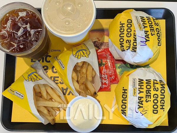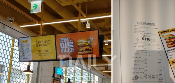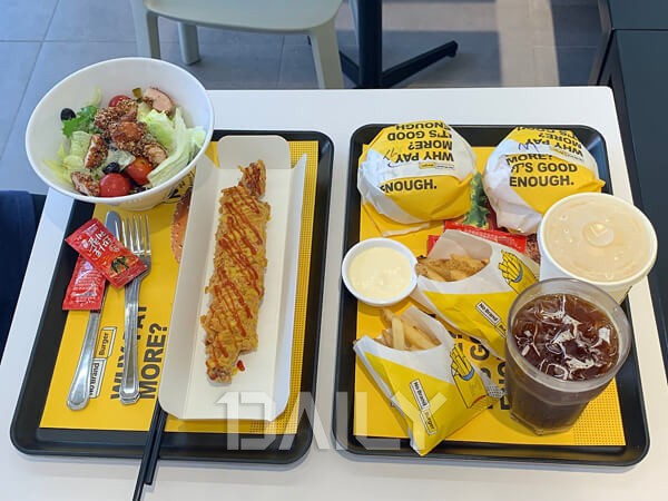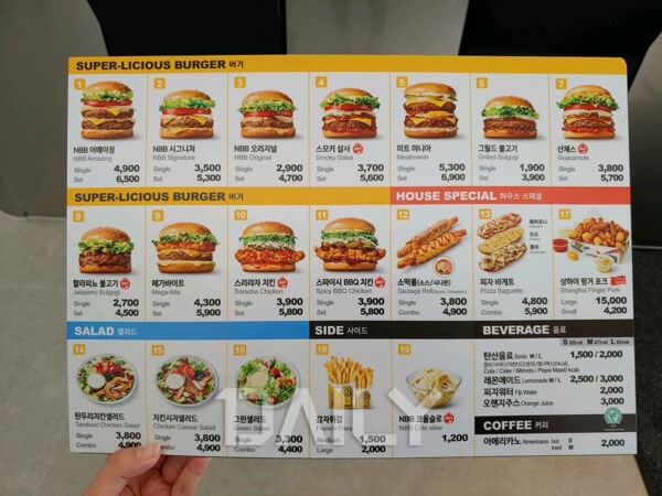 ¸Þ´º´Â Å©°Ô ¡®¹ö°Å¡¯, ¡®ÇϿ콺 ½ºÆä¼È¡¯, ¡®»ø·¯µå¡¯, ¡®»çÀ̵塯, ¡®À½·á¡¯, ¡®Ä¿ÇÇ¡¯·Î ³ª´©¾îÁ® ÀÖ´Ù. 11°¡Áö ¹ö°Å Á¾·ù Áß °¡Àå Àú·ÅÇÑ ¸Þ´º´Â ¡®±×¸±µå ºÒ°í±â¡¯·Î ´Üǰ °¡°ÝÀÌ 1,900¿øÀÌ´Ù. °¨ÀÚÆ¢±è°ú À½·á°¡ Æ÷ÇÔµÈ ¼¼Æ®¸Þ´ºµµ 3,900¿øÀÌ¸é ±¸¸ÅÇÒ ¼ö ÀÖ´Ù. ¸Æµµ³¯µå¿¡¼ °¡Àå Àú·ÅÇÑ ¹ö°ÅÀÎ ºÒ°í±â¹ö°Å°¡ 2,000¿ø, ·Ôµ¥¸®¾ÆÀÇ ºñÇÁ¹Ùº£Å¥¹ö°Å°¡ 2,000¿øÀÎ °ÍÀ» ¹Ì·ç¾îº¸¾Æ ÀûÀº Â÷À̱ä ÇÏÁö¸¸, ³ëºê·£µå ¹ö°Å°¡ ´Ù¸¥ ÆÐ½ºÆ®ÇªµåÁ¡º¸´Ù 100¿ø ´õ Àú·ÅÇÏ´Ù.