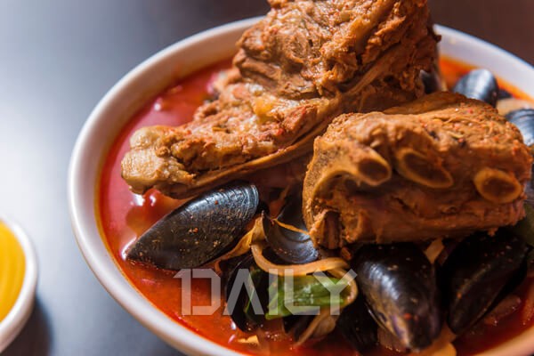 º¸Åë «»Í¿¡´Â ÇØ»ê¹°À» ³Ö¾î ½Ã¿øÇÏ°Ô ²ú¿© ³»°Å³ª ȤÀº µÅÁö°í±â¸¦ ³Ö¾î »ì¦ ¹¬Á÷ÇÏ°Ô ¸Ô´Âµ¥ À̰÷¿¡¼´Â µ¶Æ¯ÇÑ ºñÁÖ¾óÀÇ Â«»ÍÀ» ¸¸³ªº¼ ¼ö ÀÖ´Ù. °¡°Ô À̸§Ã³·³ Å« »À°¡ Åë°·Î µé¾î Àִ «»ÍÀ¸·Î Èí»ç »À´Ù±Í ÇØÀå±¹ °°Àº ´À³¦À» ÁØ´Ù. »ìÀÌ ¸¹Àº µÅÁö ¸ñ»À¸¸ °ñ¶ó °¢Á¾ ¾ç³äÀ» ´õÇØ »îÀº ÈÄ ¶äÀ» µé¿© »ç°ñ°ú ¹Î¹°»õ¿ì¸¦ ³Ö°í 12½Ã°£ ÀÌ»ó Ç« ²úÀÎ À°¼ö¿¡ ÇÔ²² ¾ñ¾îÁֱ⠶§¹®¿¡ ¾óÅ«Çϰí ÁøÇÑ ±¹¹° ¸À°ú Â̱êÇϸ鼵µ ºÎµå·¯¿î °í±âÀÇ ¸ÀÀÌ Àß ¾î¿ì·¯Áø´Ù.
