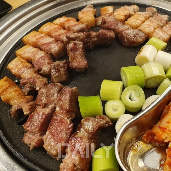 ³Ãµ¿ »ï°ã»ì Çϸé Áú ¶³¾îÁö´Â °í±â·Î »ý°¢ÇØ ±»ÀÌ µ· ÁÖ°í ¸Ô¾î¾ß Çϳª °í¹ÎÇÏ´Â °æ¿ì°¡ ¸¹´Ù. ÇÏÁö¸¸ ´ëÆÄÁý¿¡¼ ³Ãµ¿ »ï°ã»ìÀ» ¸Ô¾îº¸¸é ±× »ý°¢ÀÌ 180µµ·Î º¯ÇÏ°Ô µÈ´Ù. ÃÖ»ó±Þ ±¹³»»ê »ý°í±â¸¦ ¸Ô±â ÁÁÀº µÎ²²·Î ¾ã°Ô ½ä¾î ±Þ·© ½ÃÄÑ Ä÷¸®Æ¼°¡ ³²´Ù¸£±â ¶§¹®ÀÌ´Ù. ¶ÇÇÑ °¡°Ô À̸§´ä°Ô ÆÄ¸¦ ±¸¿ö °çµéÀÌ¸é ±× Á¶ÇÕÀÌ ²Ï ±¦Âú´Ù. ¿©±â¿¡ ²Ê¸®°íÃß¿Í ººÀ½ ±èÄ¡, ¿À¡¾îÁ£°¥±îÁö ÇÔ²² »ç¼ ¸ÔÀ¸¸é óÀ½ ¸Ô´Â ½Å¼±ÇÑ Á¶ÇÕ¿¡ Á£°¡¶ôÁúÀ» ¸ØÃ߱Ⱑ Èûµé´Ù.