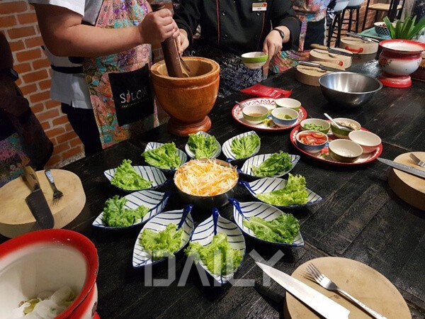 À̹ø ¹æÄÛ ¿©Çà¿¡¼´Â ÄíŷŬ·¡½º¸¦ ½ÅÃ»ÇØ¼ ´Ù³à¿Ô´Ù. »ý°¢º¸´Ù ¾ËÂ÷°í Àç¹ÌÀÖ¾î¼ ¹Ý³ªÀý ÀÏÁ¤À¸·Î ÁÁ´Ù. ³»°¡ ½ÅûÇÑ °÷Àº '½Ç·ÒŸÀÌÄíÅ·½ºÄð'À̶ó´Â °÷ÀÌ´Ù. ´Ù±¹Àû ¿©ÇàÀÚµé°ú ÇÔ²²Çϸç, º¸Åë 3¸¸ ¿ø´ë·Î ÁøÇàµÈ´Ù. ¼ö¾÷Àº ¿µ¾î·Î ÁøÇàµÇÁö¸¸, ¿µ¾î¸¦ ¸øÇصµ ¹«¸® ¾øÀÌ µû¶ó ÇÒ ¼ö ÀÖ´Ù. ÆÌŸÀÌ, 똠¾ä²á, ½ô¶¡ µî ű¹ÀÇ À¯¸íÇÑ ÀüÅëÀ½½ÄÀ» Á÷Á¢ ¸¸µé¾îº¼ ¼ö Àִµ¥, ´ëºÎºÐ ÇöÁö½ÃÀå Åõ¾îµµ Æ÷ÇԵǾî ÀÖ¾î ½ÄÀç·á¿¡ ´ëÇÑ ¼³¸íµµ µè°í ±× Àç·áµé·Î À½½ÄÀ» ¸¸µé°Ô µÈ´Ù. 4~5°¡Áö Á¤µµ¸¦ Á÷Á¢ ¸¸µé¾î ¸Ô¾îº¼ ¼ö ÀÖ°í, ½ÉÁö¾î »ç ¸Ô´Â °Í¸¸Å ¸ÀÀÖ¾î¼ ¾ËÂ÷°í Àç¹ÌÀÖ´Â ½Ã°£À̾ú´Ù. ¸ÀÁýÀ¸·Î´Â Ä«¿À»ê·Îµå¿¡¼ µµº¸ 10ºÐ Á¤µµ¿¡ À§Ä¡ÇÑ 'Å©·ç¾Æ¾Ð¼Õ'À» ÃßõÇÑ´Ù. °ü±¤°´»Ó¸¸ ¾Æ´Ï¶ó ÇöÁöÀε鵵 ã´Â °÷À¸·Î ´ëºÎºÐÀÇ ¸Þ´º°¡ ´Ù ¸ÀÀÖ´Â °÷ÀÌ´Ù.