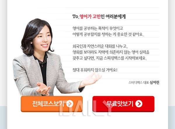 ¼¿ï´ë ÀÇ·ùÇÐ, °æ¿µÇÐÀ» Àü°øÇϰí CJ Ȩ¼îÇÎ ¿Â¶óÀÎ ÆÐ¼Ç MD¿Í ³×À̹ö µð½ºÇ÷¹ÀÌ ±¤°í ´ã´çÀ» °ÅÄ£ ÈÄ 2008³â ½ºÇÈÄɾ ¸¸µé¾ú´Ù. ÅäÀÍ Á¡¼ö´Â ³ô¾Æµµ ¸·»ó ¿Ü±¹Àΰú ¸¶ÁÖÇÏ¸é ¿µ¾î·Î Á¦´ë·Î À̾߱âÇÏÁö ¸øÇϰí Ã¥°ú ȸ鿡¸¸ ÀÇÁ¸ÇØ ½ÇÁ¦ ȸȿʹ °Å¸®°¡ ¸Ö¾î Å« µµ¿òÀÌ µÇÁö ¾Ê´Â ±¹³» ¿µ¾î È¸È ±³À°ÀÇ Çö½ÇÀÇ ¹®Á¦Á¡À» ÀǽÄÇϰí ÇöÁöÀΰú ´ëÈÇϸç ÀÚ¿¬½º·´°Ô ¹è¿ì´Â ¿µ¾î¸¦ ÄܼÁÆ®·Î Çß´Ù. ÇöÁöÀÎ ÀÎÅÍºä ¿µ»óÀ» ÅëÇØ ¸»ÇÏ´Â ¹æ¹ý»Ó¸¸ ¾Æ´Ï¶ó °çµé¾îÁö´Â ½ºÅ丮ÅÚ¸µÀ¸·Î °¢ ³ª¶óÀÇ ¹®È±îÁö ¹è¿ï ¼ö ÀÖ¾î À¯ÀÍÇÑ ÄÜÅÙÃ÷ ½ºÇÇÅ·¸Æ½º¸¦ Áß½ÉÀ¸·Î ¾î¸°À̸¦ À§ÇÑ ÄÜÅÙÃ÷, Áß±¹¾î, ¿µ´Ü¾î ÇнÀ ÇÁ·Î±×·¥ µî ´Ù¾çÇÑ ÄÜÅÙÃ÷¸¦ Á¦°øÇϰí ÀÖÀ¸¸ç ´©Àû ¸ÅÃâ¾×¸¸ 600¾ï ¿ø¿¡ À̸¥´Ù.
