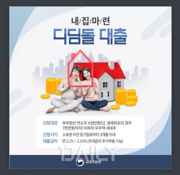 µðµõµ¹´ëÃâÀÇ ½Åû´ë»óÀº ºÎºÎÇÕ»ê ¿¬¼Òµæ 6õ¸¸ ¿ø ÀÌÇÏÀÇ ¹«ÁÖÅà ¼¼´ëÁÖÀÌ¸ç ºÎºÎÇÕ»ê ¼øÀÚ»ê °¡¾×ÀÌ Åë°èû¿¡¼ ¹ßÇ¥ÇÏ´Â Ãֱٳ⵵ °¡°è±ÝÀ¶º¹ÁöÁ¶»çÀÇ ¼Òµæ 5ºÐÀ§º° ÀÚ»ê ¹× ºÎäÇöȲ Áß ¼Òµæ 4ºÐÀ§ Àüü°¡±¸ Æò±Õ°ª ÀÌÇÏÀÎ ÀÚÀÌ´Ù. ½Åû ½Ã±â´Â ¼ÒÀ¯±ÇÀÌÀüµî±â Á¢¼öÀϷκÎÅÍ 3°³¿ù À̳»À̸ç, ´ëÃ⠱ݸ®´Â ¿¬ 2.00~3.15% ÀÌÁö¸¸ ¿ì´ë±Ý¸® Ãß°¡ Àû¿ëÀÌ °¡´ÉÇÏ´Ù.
