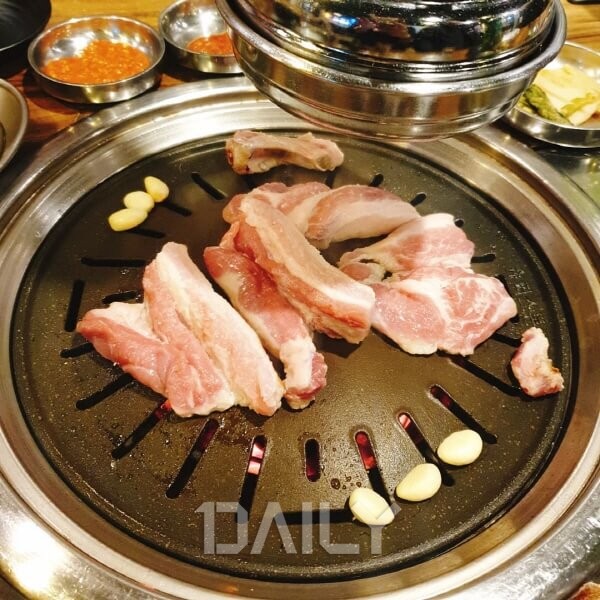 µÎÅùÇÑ Åë»ï°ã»ìÀÌ ¸ÀÀÖ´Â µÅÁö°í±â Àü¹®Á¡À¸·Î ÇÁ¸®¹Ì¾ö Çѵ· ¾ÏÅïÁö¸¦ »ç¿ëÇÑ´Ù°í ÇÑ´Ù. ¸Þ´º´Â »ï°ã»ìºÎÅÍ, Åë¸ñ»ì, Ç×Á¤»ì, °¥¸Å±â»ì, °¡ºê¸®»ì µî ¿©·¯ ºÎÀ§°¡ ´Ù¾çÇÏ°Ô ÀÖÀ¸¸ç ¼÷¼º½ÃŲ °í±â¸¦ 3cm µÎ²²·Î µÎ²®°Ô ½ä¾î dzºÎÇÑ À°ÁóÀ» ´À³¥ ¼ö ÀÖ´Ù. °íÃß³ÃÀÌ¿Í ¸íÀ̳ª¹° µî°ú ÇÔ²² °çµé¿© ¸Ô´Â µÅÁö°í±â´Â ´ã¹éÇÏ°í ´À³¢ÇÏÁö ¾Ê´Ù. Á¡½É½Ã°£¿¡´Â ½Ä»ç·Î ¸ÔÀ» ¼ö ÀÖ´Â ¿ÏÀںδëÂî°³¿Í ¿À¡¾îÁ¦À°¹é¹Ý, ±èÄ¡Âî°³ µîÀÇ ¸Þ´ºµµ ÀÖÀ¸´Ï Âü°íÇÏÀÚ.