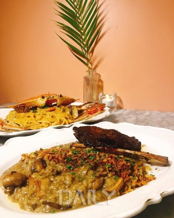 ÀüÇô È·ÁÇØ º¸ÀÌÁö ¾Ê´Â ¿Ü°ü°ú ³ÐÁö ¾ÊÀº °ø°£ÀÇ °¡°ÔÀÌÁö¸¸ ÆÄ½ºÅ¸ ¸ÀÁýÀ¸·Î À̸§³ °÷ÀÌ´Ù. ÆÄ½ºÅ¸¿Í ÇÇÀÚ, »ø·¯µå, ¸®Á¶¶Ç, ½ºÅ×ÀÌÅ©, ¶±ººÀ̱îÁö ¿©·¯ À½½ÄµéÀÌ °ñ°í·ç ÀÖ´Â À̰÷ÀÇ ´ëÇ¥ ¸Þ´º´Â ´©·îÁöÅ©¸²ÆÄ½ºÅ¸´Ù. ÇØ»ê¹°ÀÌ µé¾î°£ ÀϹÝÀûÀÎ Å©¸² ÆÄ½ºÅ¸Ã³·³ º¸ÀÌÁö¸¸ ¸é°ú ¼Ò½º¸¦ Àß ºñº ¸Ô´Ù º¸¸é ¶Ò¹è±âó·³ µÎ²¨¿î ±×¸© ¹Ø¹Ù´Ú¿¡ ±ò·Á ÀÖ´Â ¹äÀÌ µîÀåÇÑ´Ù. ´©·îÁöó·³ Àû´çÈ÷ ´¾îºÙ¾î ÀÖ´Â ¹äÀº Å©¸²¼Ò½º¿Í Àß ¾î¿ï¸®¸ç ÆÄ½ºÅ¸¿Í ¸®Á¶¶Ç¸¦ µ¿½Ã¿¡ Áñ±â´Â µíÇÑ ¿ä¸®´Ù.