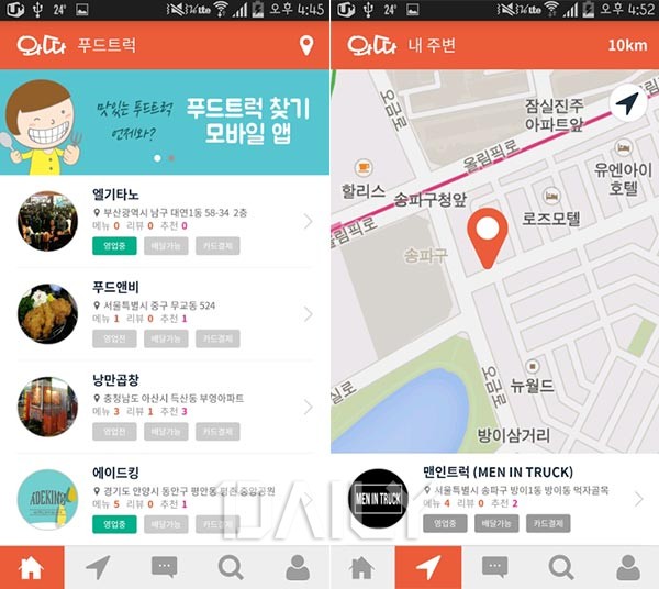 Ãֱ٠ǪµåÆ®·°¿¡¼ ÆÇ¸ÅÇÏ´Â À½½ÄÀÇ ÀαⰡ ³ô¾ÆÁü¿¡ µû¶ó SNS¸¦ ÅëÇØ È®ÀÎÇϰí ǪµåÆ®·°À» ã¾Æ°¡´Â »ç¶÷µéÀÌ ´Ã°í ÀÖ´Ù. ÇÏÁö¸¸ óÀ½ °¡´Â »ç¶÷µéÀº ã±â ¾î·Æ°í, Ȥ¿©³ª ǪµåÆ®·°ÀÇ À̵¿ÀÌ ÀÖÀ» °æ¿ì ãÀ» ¹æ¹ýÀÌ ¾ø´Ù. ÇÏÁö¸¸ ¡®¿Íµû! ¿ì¸®µ¿³× ǪµåÆ®·°¡¯ ¾Û Çϳª¸¸ ¼³Ä¡ÇÏ¸é ¾îµðµçÁö ã¾Æ°¥ ¼ö ÀÖ´Ù. ǪµåÆ®·° ¸ÂÁý Á¤º¸¿Í À§Ä¡ Á¤º¸¸¦ Á¦°øÇÏ´Â ÀÌ ¾îÇø®ÄÉÀ̼ÇÀº ÀÚ½ÅÀÇ À§Ä¡¸¦ Áß½ÉÀ¸·Î ¿µ¾÷ÁßÀΠǪµåÆ®·°µéÀ» Áöµµ¸¦ ÅëÇØ È®ÀÎÇÒ ¼ö ÀÖÀ¸¸ç, ǪµåÆ®·°ÀÇ ¸Þ´º¿Í ¿µ¾÷ Á¤º¸µµ ÇÑ ´«¿¡ È®ÀÎÇÒ ¼ö ÀÖ´Ù.
