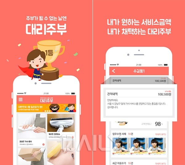 Áý¾ÈÀÏÀ̳ª À½½Ä, Æ÷ÀåÀÌ»ç, »êÈÄÁ¶¸®, Àü¹® û¼Ò(ÀÔÁÖ Ã»¼Ò, ÀÌ»çû¼Ò, °ÅÁÖ´ëû¼Ò), º£À̺ñ½ÃÅÍ, ÀÌÀÏÀúÀÏ(°¢Á¾ ½ÉºÎ¸§ ¹× À庸±â, ¹Ý·Áµ¿¹° »êÃ¥ µî)À» Àü¹®À¸·Î ÇÏ´Â ÁøÁ¤ÇÑ È¨ÄÉ¾î ¼ºñ½º ¾Û ´ë¸®Áֺδ ÀÌ¹Ì ¸¹Àº ÁֺεéÀÌ ¾Ö¿ëÇϰí ÀÖ´Ù. ¼ºñ½º ¸ñ·Ï °¡¿îµ¥ ÀÚ½ÅÀÌ ÇÊ¿äÇÑ Ä«Å×°í¸®¸¦ °ñ¶ó µé¾î°¡¸é Á¦¸ñ°ú ¾÷¹«Á¾·ù, ¾÷¹«Àå¼Ò, Áý Æò¼ö µîÀ» ¼³Á¤ÇÑ ÈÄ °ßÀûÀ» ¿äûÇÒ ¼ö ÀÖÀ¸¸ç, ÀÌ ³»¿ëÀ» Åä´ë·Î ¾÷¹«¸¦ ¸Ã°íÀÚ ÇÏ´Â ´ë¸®ÁֺεéÀÌ Áö¿øÀ» ÇÏ¸é ¸¶À½¿¡ µå´Â ´ë¸®Áֺθ¦ ¼±ÅÃÇÒ ¼ö ÀÖ´Ù.