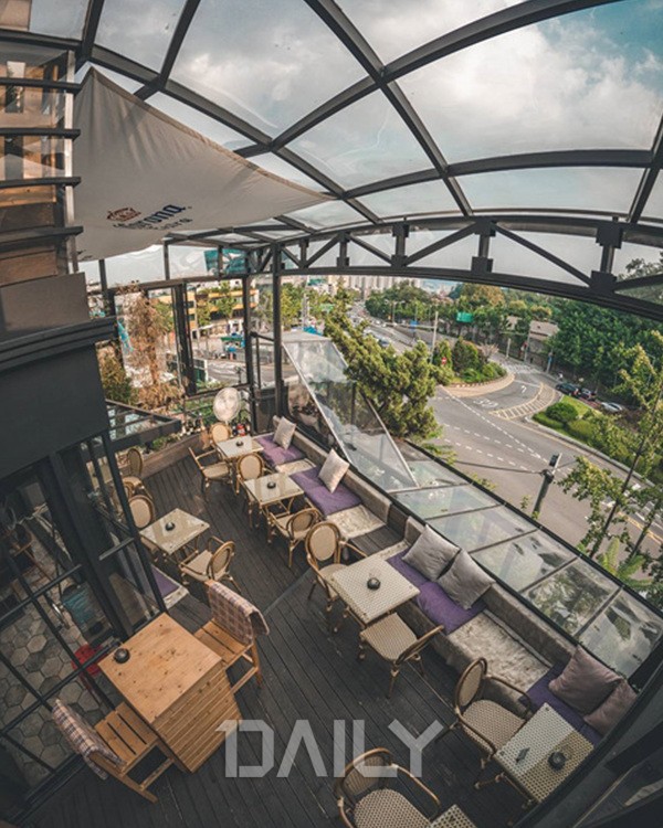 ³ì»çÆò¿ª Àαٿ¡ À§Ä¡ÇÑ ¡®¾²¸®¼½¼Ç¡¯. ·çÇÁž¹Ù¿¡¼¸¸ ¹ÛÀ» º¼ ¼ö ÀÖ´Â°Ô ¾Æ´Ï¶ó, °¡°Ô ³»ºÎ¿¡¼ ¹ÛÀ» ½Ã¿øÇÏ°Ô ¹Ù¶óº¼ ¼ö ÀÖ´Â ÅëÀ¯¸®°¡ ÁöºØ±îÁö À̾îÁø °ÍÀÌ Æ¯Â¡ÀÌ´Ù. ·çÇÁž¹Ù ³» Å×À̺í, ÀÇÀÚ µî ¸ðµç °¡±¸µéÀÌ ¿ø¸ñÀ¸·Î ²Ù·ÁÁ® ÀÖÀ¸¸ç, ³ª¹« ¹Ù´Ú°ú ÀΰøÀܵð, °÷°÷¿¡ ¹èÄ¡µÈ Ǫ¸£¸¥ ³ª¹«µéÀÇ Á¶È´Â »è¸·ÇÑ µµ½Ã¿¡¼ Èú¸µÀ» Çϱ⿡ ÀûÇÕÇÏ´Ù.