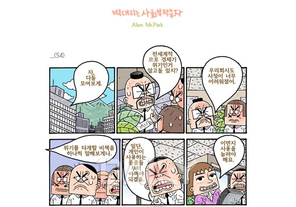 ¿Ü±¹°è ´ëÇü¸¶Æ®¿¡¼ ¹ú¾îÁö´Â ºÎ´ç ÇØ°í¿Í ±×¿¡ ´ëÇ×ÇÏ´Â Æò¹üÇÑ »ç¶÷µéÀÇ À̾߱⸦ ±×·Á³»°í ÀÖ´Ù. Çö½Ç¿¡ ±¼º¹ÇÏÁö ¸ø ÇÏ´Â ÁÖÀΰø À̼öÀÎÀº ³ÃöÇÑ ³ëµ¿»ó´ã¼ÒÀå ±¸°í½Å°ú ÇÔ²² ³ëÁ¶¸¦ Á¶Á÷ÇÏ°í ¸¶Æ® ³ëµ¿ÀÚµé°ú ȸ»ç¿¡ ¸Â¼ ´ëÇ×ÇÏ´Â °úÁ¤À» ±×¸° ÀÌ À¥Å÷Àº Çѱ¹ »çȸÀÇ ´Ü¸éÀ» ³¯Ä«·Ó°Ô º¸¿©ÁÖ°í ÀÖ´Ù. ¡®Çª¸£¹Ì¡¯¶ó´Â ´ëÇü¸¶Æ®¸¦ ¹è°æÀ¸·Î ºñÁ¤±ÔÁ÷°ú ÆÄ°ß±Ù¹«, ³ëµ¿¿îµ¿À» »ç½ÇÀûÀ¸·Î ¹¦»çÇß°í µå¶ó¸¶·Îµµ Å« °ü½ÉÀ» ¸ð¾Ò´Ù.