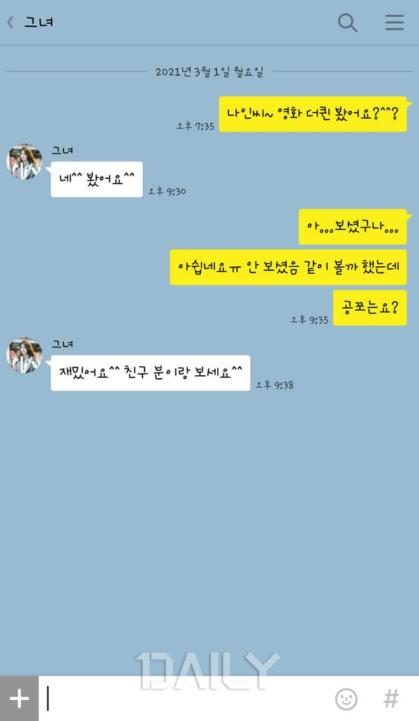 ³²ÀÚµé°ú ºñ½ÁÇÏ´Ù. ¿©ÀÚµµ °ü½É ÀÖ´Â »ç¶÷¿¡°Õ 'ÀÀ¤»'À̶ó´Â ¸Þ½ÃÁö µü Çϳª¸¸ º¸³»Áö ¾Ê´Â´Ù. °Å±â´Ù ÄðÇÏ°Ô '¤»' Çϳª¸¸ ºÙÀÌ´Ù´Ï, ÀÌ°Ç ±×³à°¡ Ç¥ÇöÇÑ ²Ï °µµ ³ôÀº ºÎÁ¤ÀûÀΠǥÇöÀÏ ¼ö ÀÖ´Ù. ±× ÀÌÀü¿¡ ´ëȰ¡ ¹«¾ùÀÌ µÇ¾ú°Ç °£¿¡, ±×³àÀÇ ÄðÇÑ ´Ü´äÀº ±×¸® ±àÁ¤ÀûÀÎ ½ÅÈ£°¡ ¾Æ´Ï¶ó´Â °ÍÀ» À¯³äÇÏÀÚ.