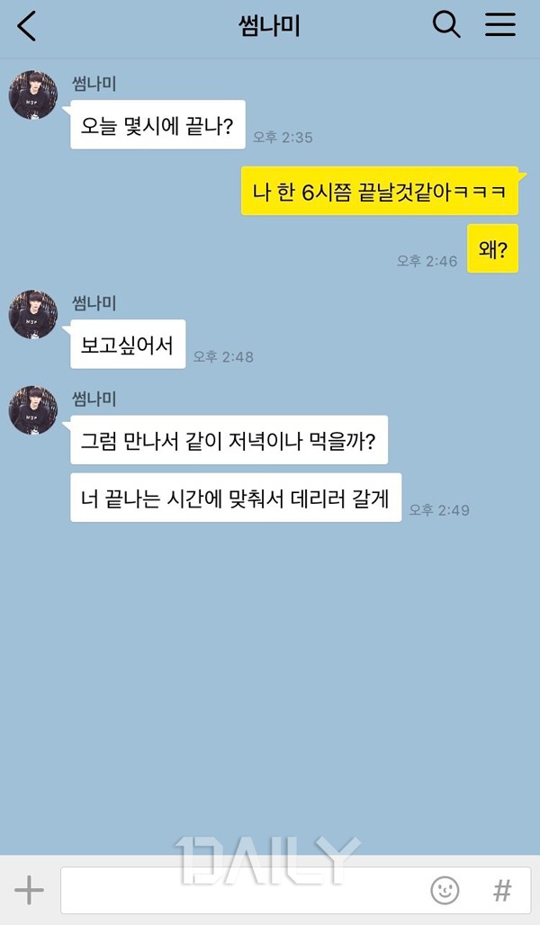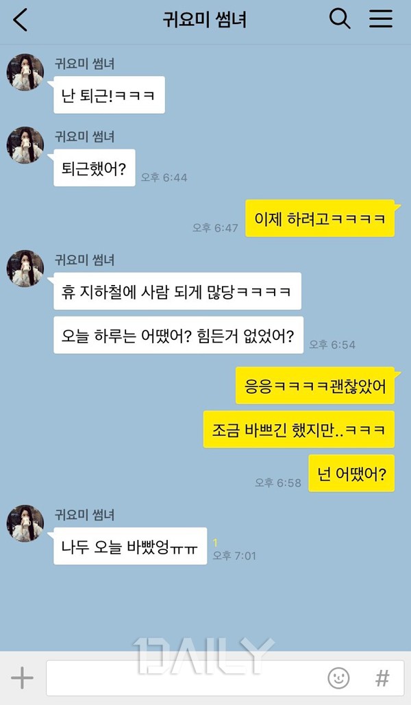 ¾ÆÄ§¿¡ ´«À» ¶¹À» ¶§ ½æ³²¿¡°Ô "Àß Àä¾î?"¶ó°í Ä«ÅåÀÌ ¿Í ÀÖÀ¸¸é ¼³·¹´Â ¸¶À½À¸·Î ÇϷ縦 ½ÃÀÛÇÏ°Ô µÈ´Ù. ´Ù¸¥ ¶§¿¡ ¼±ÅåÀÌ ¿À´Â °Íµµ ÁÁÁö¸¸ ¸ð´× Ä«ÅåÀÌ ´õ ÁÁÀº ÀÌÀ¯´Â ½æ³²ÀÌ ÀϾÀÚ¸¶ÀÚ ³» »ý°¢À» Çß´Ù´Â »ç½Ç ¶§¹®ÀÌ´Ù. µî±³ Áغñ³ª Ãâ±Ù Áغñ·Î ¹Ù»Û ½Ã°£¿¡ Æ´Æ´ÀÌ ½Ã°£À» ³»¾î ¿¬¶ôÇÏ´Â ½æ³²ÀÇ ¸ð½ÀÀÌ ³» ¸¶À½À» ¼³·¹°Ô ¸¸µç´Ù.