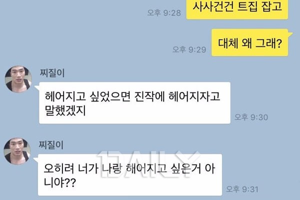 Àú±â ³ª¿µÈ°Ô ÂîÁúÇÑ°Ç ¾Ë°Ú´Âµ¥, ±×·³ ¾î¶»°Ô Çì¾îÁ®¾ß ¹Ù¶÷Á÷ÇÑ À̺°ÀÌÁÒ? \'³ª ³Ê ´õÀÌ»ó ¾ÈÁÁ¾ÆÇØ. Çì¾îÁöÀÚ.\' ¸î³âµ¿¾È Á¤µç »ç¶÷¿¡°Ô ÀÌ·¸°Ô ³ÃÁ¤ÇÏ°Ô ¸»ÇÒ ¼ö ÀÖ¾î¾ß ÂîÁúÇÏÁö ¾Ê°í ¸ÚÁø À̺°Àΰǰ¡¿ä? À̺°ÀÌ ¿ø·¡ ´Ù ±¸Áú±¸ÁúÇϰí, ÂîÁúÇϰí, ±¸Â÷ÇѰÅÁÒ..