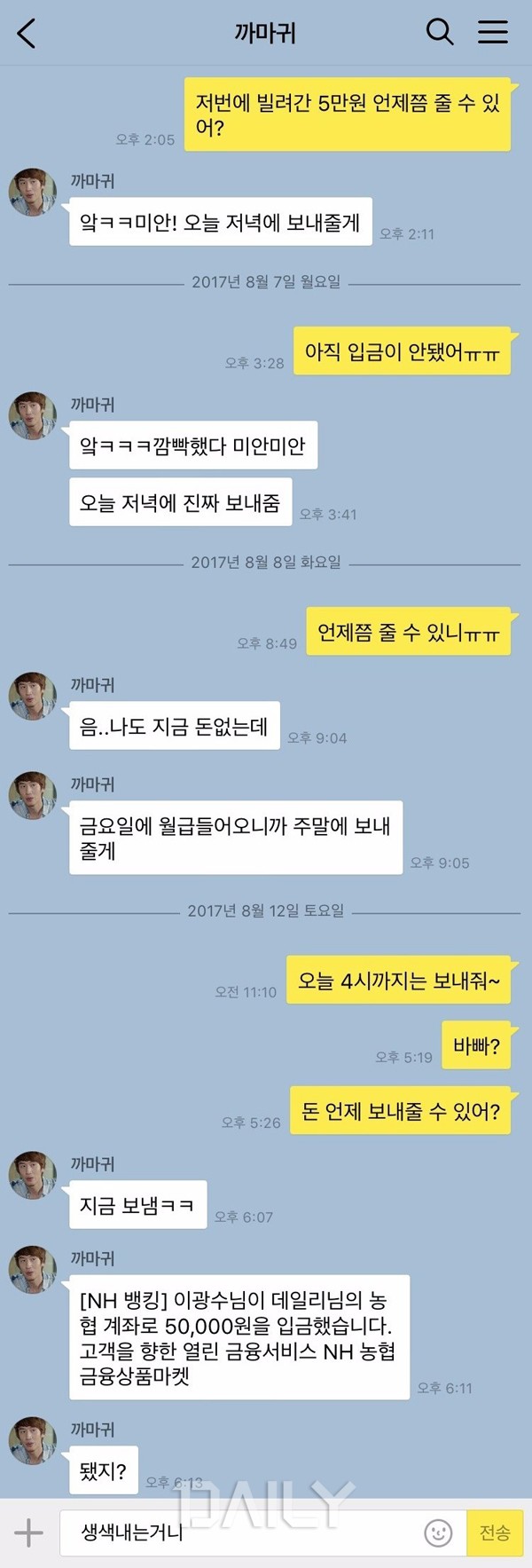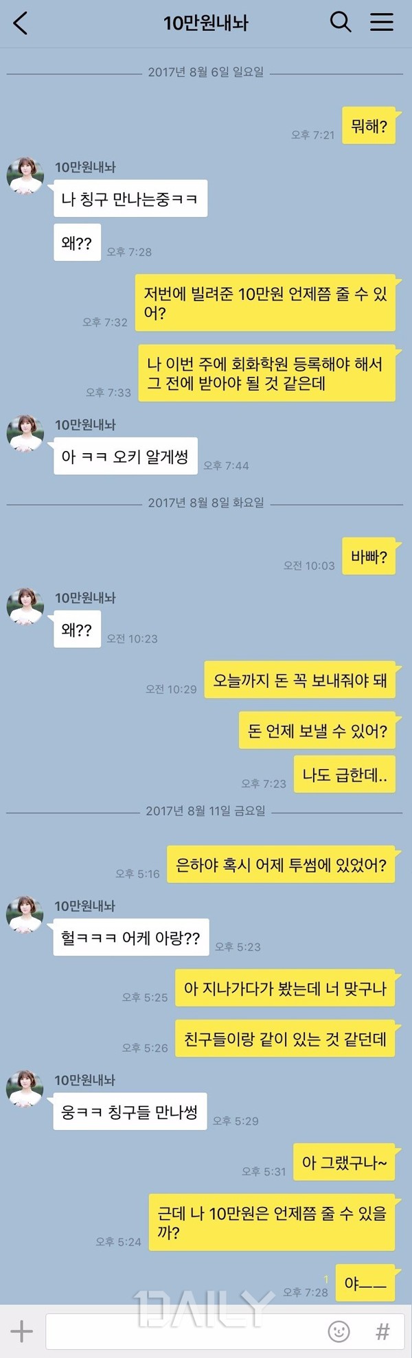 Ä«ÅåÀ¸·Î º¸´Â µ· ºô·ÁÁֱ⠽ÈÀº Ä£±¸ À¯Çü ¹Ì¾ÈÇѵ¥, ³ª µ· Á» ºô·ÁÁÖ¶ó ±Û : ¾ÈÇý¼±