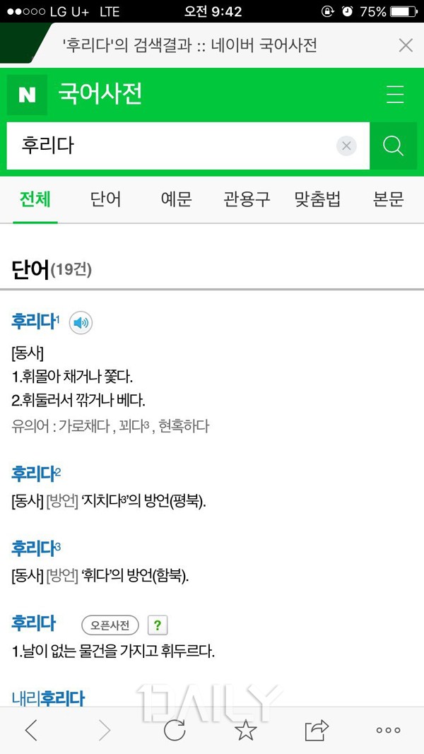 ´Ù¸¥ »ç¶÷À» ¶§¸®°Å³ª ÃÆÀ» ¶§ 'ÈÄ·È´Ù'°í Ç¥ÇöÇÏ´Â »ç¶÷µéÀÌ ÀÖ´Ù. Èĸ®´Ù´Â 'ÈÖ¸ô¾Æ¼ ä°Å³ª ÂÑ´Ù', 'Èֵѷ¯¼ ±ð°Å³ª º£´Ù', 'Èֵѷ¯¼ ¶§¸®°Å³ª Ä¡´Ù' ¶Ç´Â 'ÁöÄ¡´Ù', 'ÈÖ´Ù'ÀÇ ¹æ¾ðÀÌ´Ù. µû¶ó¼ ´Ù¸¥ »ç¶÷À» ¶§·ÈÀ» ¶§ 'Èĸ®´Ù'´Â Ç¥ÇöÀ» »ç¿ëÇß´Ù¸é, 'Èֵѷ¯¼ ¶§¸®°Å³ª Ä¡´Ù'ÀÇ ¶æÀ¸·Î »ç¿ëÇÑ °ÍÀ̶ó°í ÇÒ ¼ö ÀÖ´Ù.