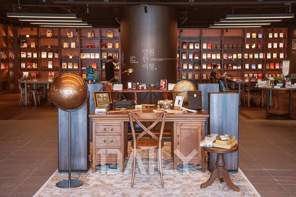 ºÎ»ê ±âÀ屺 ·¹Àú Ÿ¿î ¾Æ³Æ¼ Äں꿡´Â ÀÌÅͳΠÀú´Ï(eternal journey), Áï ¿µ¿øÇÑ Ç×ÇØ¶õ ¶æÀÇ ¼Á¡ÀÌ ÀÖ´Ù. À̰÷ ¿ª½Ã ¼Á¡ÀÌÁö¸¸ ¸Å¿ì µ¶Æ¯ÇÏ°í °³¼ºÀÌ ³ÑÄ¡´Â °ø°£À¸·Î, ±âÁ¸ ¼Á¡°ú ´Þ¸® Áø¿µÈ Ã¥µéÀÇ ¹Ðµµ¸¦ ³·Ãß¾î Æí¾ÈÇϸ鼵µ ¿©À¯·Î¿î µ¶¼¸¦ ÇÒ ¼ö ÀÖµµ·Ï ÇØÁØ´Ù. ¶Ç ³»ºÎ¿¡ Ä«Æä°¡ ¸¶·ÃµÇ¾î ÀÖ¾î ´Ü¼øÈ÷ Ã¥À» »ç°íÆÄ´Â ¼Á¡ÀÌ ¾Æ´Ñ Ã¥À» ¸Å°³Ã¼·Î ÀÚ½ÅÀÌ Àذí ÀÖ¾ú´ø, ¶Ç´Â ¸ô¶ú´ø ÃëÇâÀ» ¹ß°ßÇÒ ¼ö ÀÖ´Â ¿©Çà °ø°£À» ¼±»çÇÑ´Ù.
