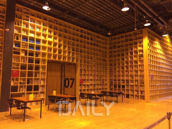 Çѳ²µ¿ ºí·ç½ºÄù¾î 2, 3Ãþ¿¡ À§Ä¡ÇÑ ºÏÆÄÅ©´Â 5°³ ÃþÀ» °üÅëÇÏ´Â ±æ°í ³ôÀº Ã¥ÀåÀ¸·Î À¯¸íÇÏ´Ù. ÇϳªÀÇ Ã¥ÀåÀÌ 27m ³ôÀÌ·Î ¼¼¿öÁ® ÀÖ´Â °Í. À̰÷Àº °ø½ÄÀûÀ¸·Î´Â ¼Á¡ÀÌÁö¸¸, ²Ï ¸¹Àº Á¼®µéÀÌ ±¸¼®±¸¼® ¹èÄ¡µÇ¾î ÀÖ°í °¢ Ãþ¸¶´Ù Ä«Æäµµ ÀÖ¾î ºÏÄ«ÆäÀÇ ºÐÀ§±â¿Í À¯»çÇÏ´Ù.