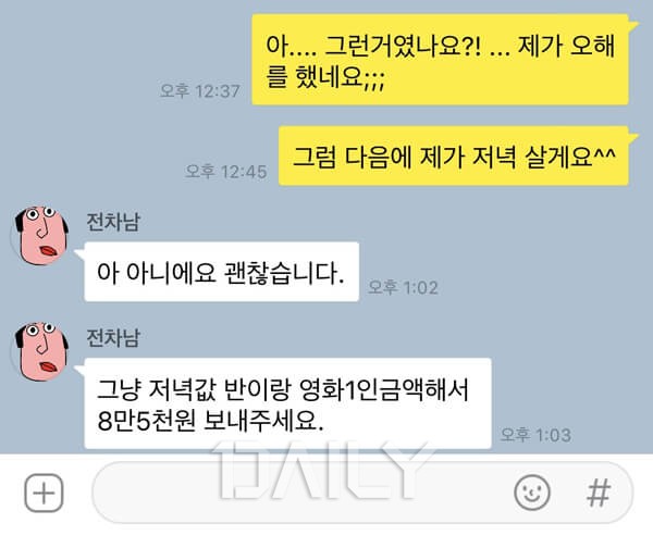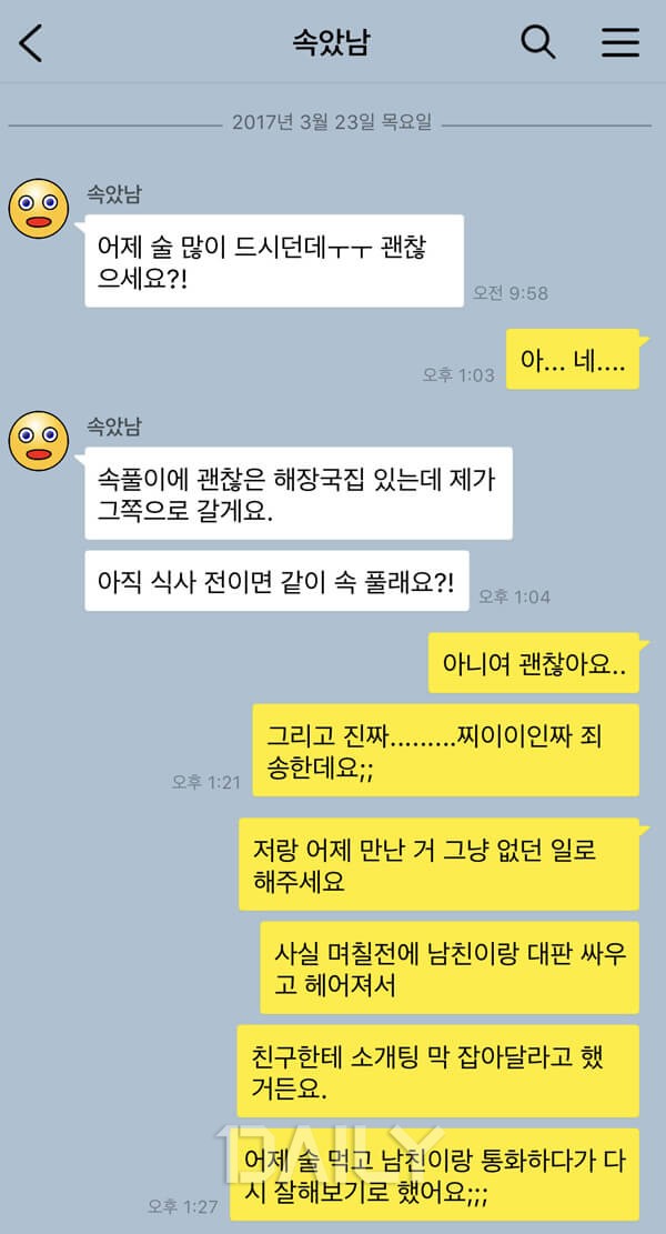 ³ª¸§ ºÐÀ§±â°¡ ÁÁ¾Ò°í Àß Çì¾îÁ³´Ù »ý°¢Çߴµ¥ ¾ÖÇÁÅÍ ½Åû ´ë½Å »ó´ë¹æÀÌ ±×³¯ÀÇ ºñ¿ëÀ» û±¸ÇÑ´Ù¸é? ¾îÀ̾ø´Ù ¸øÇØ ¹Î¸ÁÇϱâ ¦ÀÌ ¾øÀ» µí½Í´Ù. ÀÌ·± ºÒ»ó»ç°¡ »ý±â±â Àü¿¡ ¼Ò°³ÆÃÇÒ ¶§´Â ¾î´À ÇÑ »ç¶÷ÀÌ ÀϹæÀûÀ¸·Î ³»Áö ¾Êµµ·Ï ¼·Î ¸Å³Ê¸¦ ÁöÄÑÁÖ´Â °Ô ÁÁ´Ù. ¹°·Ð ù ¸¸³²À» ÇѰÀÌ º¸ÀÌ´Â ±Ù»çÇÑ ·¹½ºÅä¶û¿¡¼ ¿ÍÀÎ ÇÑ º´°ú ½ºÅ×ÀÌÅ©¸¦ ÁÖ¹®Çصµ ÁÁ°ÚÁö¸¸ ÀÌ´Â ´ÙÀ½ ¹ø ¸¸³²À» ºÎ´ã½º·´°Ô ÇÏ´Â ÇൿÀÌ µÉ ¼ö ÀÖÀ¸´Ï ±Ý¾×ÀûÀÎ ºÎºÐ¿¡ ÀÖ¾î ¼·Î¿¡°Ô ºÎ´ãÀÌ µÇÁö ¾Êµµ·Ï Àå¼Ò¸¦ Á¤ÇÏ´Â °Íµµ ÁÁÀº ¹æ¹ýÀÌ´Ù.