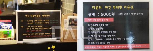 ¾ß°£¿¡´Â ÀÚÀ¯ÀÌ¿ë±ÇÀ» ÀÌ¿ëÇÒ ¼öµµ ÀÖ´Ù. ¿ÀÈÄ 5½ÃºÎÅÍ´Â 13,000¿ø, ¿ÀÈÄ 7½ÃºÎÅÍ´Â 10,000¿ø¸¸ ÁöºÒÇÏ¸é ½°½ºÅ丮ÀÇ ¸ðµç Å׸¶¸¦ ÀÚÀ¯·Ó°Ô ÀÌ¿ëÇÒ ¼ö ÀÖ´Â °ÍÀÌ´Ù. ¸¸¾à ħ´ë³ª ¾È¸¶ÀÇÀÚ ¾øÀÌ ¶ó¿îÁö¿¡¼ ÈÞ½ÄÀ» ÃëÇÏ°í ½Í´Ù¸é ´õ¿í Àú·ÅÇÑ ¶ó¿îÁö ¾ß°£ ¹«Á¦ÇÑ ÀÌ¿ë±ÇÀ» ±¸ÀÔÇÏ´Â °Íµµ ÁÁÀº ¹æ¹ýÀÌ´Ù. À½½ÄÀº ¹°·Ð ÁÖ·ù ¹ÝÀÔ(¸ÆÁÖ ±âÁØ 1ÀÎ 2ĵ±îÁö)µµ °¡´ÉÇØ ´õ¿í ³» Áý °°Àº Æí¾ÈÇÔÀ» ´À³¥ ¼ö ÀÖ´Ù.
