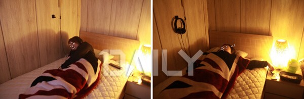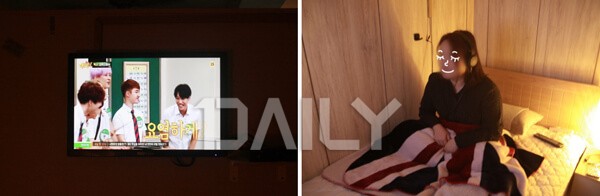 ħ´ë ¸ÂÀºÆí¿¡´Â TV°¡ °É·ÁÀÖ´Ù. ´Ù¸¥ ÀÌ¿ëÀڵ鿡°Ô ºÒÆíÀ» ³¢Ä¡Áö ¾Ê°í TV¸¦ ½ÃûÇÒ ¼ö ÀÖµµ·Ï ħ´ë ¿·¿¡ ÇìµåÆùµµ ÁغñµÇ¾î ÀÖ´Ù. óÀ½¿¡´Â ¾É¾Æ¼ TV¸¦ ½ÃûÇÏ´Ù°¡ Æí¾ÈÇÑ ÀÚ¼¼·Î ´¯´õ´Ï, ±×´ë·Î ÇìµåÆùÀ» »©°í ÀáÀÌ µé¾î¹ö·È´Ù.