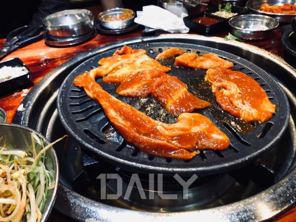 ³²¾ç±¸ ¹¦Àû °è°îÀÌ È帣´Â °÷¿¡ Ææ¼ÇÀÌ ¾Æ´Ò±î ÇÒ Á¤µµ·Î Âø°¢À» ÀÏÀ¸Å°´Â ¿¹»Û ¿Ü°üÀÇ °íÃßÀå »ï°ã»ì ¸ÀÁýÀÌ ÀÖ´Ù. ¾ç³äÀÌ ¹¯Àº °í±â°¡ ŸÁö ¾Ê°Ô²û Èò»ö ÇÑÁö¿¡ ¿Ã·ÁÁÖ´Â Á¡µµ ¼¾½º ÀÖ´Ù. Á¤°¥ÇÏ°Ô ¸¸µç Áý ¹ÝÂù ½ºÅ¸ÀÏÀÇ ¹Ø¹ÝÂùÀÌ ³»¾îÁö°í Áö±ÛÁö±Û °í±â¸¦ ±¸¿ö ±è°ú ²¢ÀÙ ¹«, Äᳪ¹° ±×¸®°í °í±â±îÁö ÇÑ Á¡ ¿Ã·Á ½Î ¸ÔÀ¸¸é dz¹Ì°¡ ÈξÀ ±í¾îÁø´Ù. °í±â¸¦ ±Á´Ù º¸¸é Á÷¿øÀÌ Ä¡Á ¿Ã·ÁÁÖ°í ÅäÄ¡·Î À§¸¦ ±×À»·ÁÁִµ¥ Ä¡Áî¿Í ÇÔ²² °çµéÀÌ´Â °í±â ¸ÀÀº ±×¾ß¸»·Î ²Ü¸ÀÀÌ´Ù. °Ô´Ù°¡ ¹Ý·Áµ¿¹°µµ µ¿¹ÝÇÒ ¼ö ÀÖ¾î ´õ´õ¿í ÂøÇÑ ½Ä´çÀÌ´Ù.