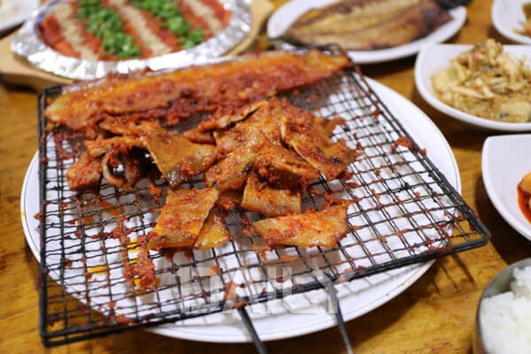 ¹®°æ»õÀç ºÎ±Ù¿¡ À§Ä¡Çϰí ÀÖ¾î °ü±¤ ÈÄ¿¡ µé·¯º¸±â ÁÁÀº °÷ÀÌ´Ù. ¹®°æÀÇ Æ¯»êǰÀÎ ¿À¹ÌÀÚ¸¦ ÀÌ¿ëÇØ ¸ÀÀÖ´Â ´õ´ö±¸ÀÌ¿Í °íÃßÀå»ï°ã»ìÀ» ¼±º¸À̴µ¥ Á÷Á¢ ±¸¿ï ÀÏÀÌ ¾ø¾î ´õ¿í ÆíÇÏ´Ù. ÁÖ¹®°ú µ¿½Ã¿¡ ¼®¼è¿¡ ±Á±â ½ÃÀÛÇϴµ¥ ¼®¼è »çÀÌ»çÀÌ·Î ±â¸§±â°¡ Âß ºüÁ®¼ ´ã¹éÇϸ鼵µ, ¸ÅÄÞÇÑ °íÃßÀå ¾ç³ä ¸ÀÀÌ ´õ¿í ¹è°¡µÈ´Ù. °Å±â¿¡ ºÒÇâÀ» °¡µæ ¸Ó±Ý°í ÀÖ¾î ´õ¿í ±íÀº ¸ÀÀ» ´À³¥ ¼ö ÀÖ´Ù. ¸ÅÄÞÇϸ鼵µ ´ÞÄÞÇÔÀÌ »ì¦ ´À²¸Áö´Â Àß°Ô ÂõÀº ´õ´ö±¸À̵µ º°¹Ì Áß º°¹Ì´Ù.
