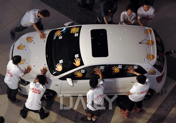 ÈÀå½Çµµ ¾È °¡°í ¸ÔÁöµµ ¾Ê°í ÁÖÀú¾ÉÁö ¾Ê°í ²à²àÇÏ°Ô ÇÑ ¼Õ¹Ù´Ú¸¸ ´ë°í ¹öƾ´Ù¸é ¹Ù·Î ¸Â´ë°í ÀÖ´Â ±× Â÷°¡ ´ç½Å °ÍÀÌ µÈ´Ù. Áß±¹¿¡¼ ¿¸®´Â ÀÚµ¿Â÷ ¿À·¡ ¸¸Áö±â ´ëȸ°¡ ¹Ù·Î ±×°ÍÀε¥ ÀÚµ¿Â÷¿¡ ºÙ¾î ÀÖ´Â ¼Õ¹Ù´Ú ¸ð¾çÀÇ ½ºÆ¼Ä¿¿¡ ÀÚ½ÅÀÇ ¼ÕÀ» ´ë°í ±×³É ¹öƼ±â¸¸ ÇÏ¸é µÈ´Ù. ÃÖ°í ¿À·¡ ¹öÅá´ø »ç¶÷Àº 2013³â ´ç½Ã ÀÌ½Ê ´ë ¿©¼ºÀ¸·Î ¹«·Á 51½Ã°£ 16ºÐÀ» ¹öÅß °á±¹ 15¸¸ À§¾È(¾à 3õ¸¸ ¿ø) »ó´çÀÇ ÀÚµ¿Â÷¸¦ ¼±¹° ¹Þ¾Ò´Ù°í ÇÑ´Ù.