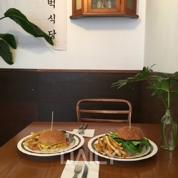 À̸§¿¡¼ »ì¦ ¿¹»óÇÒ ¼ö ÀÖµíÀÌ À̰÷Àº Àü¹® ¼öÁ¦¹ö°Å¸¦ ¸¸µå´Â °÷À¸·Î ¹ö°Å¸¦ ¸Ô°í ³ª¸é ¿ØÁö Çàº¹ÇØÁú °Í °°ÀÌ ±Í¿©¿î ´À³¦ÀÌ´Ù. ¼öÁ¦¹ö°ÅÀÇ ¸ÀÀ» ÁÂÁö¿ìÁöÇÏ´Â °ÍÀº ä¼ÒÀÇ ½Å¼±µµ¿Í ÆÐƼ·Î, µÎ °¡Áö ¸ðµÎ ÃæÁ·ÇÏ´Â ÁýÀÌ´Ù. Á¦¹ý ¹¬Á÷ÇÑ ÆÐƼ´Â À°ÁóÀ» °í½º¶õÈ÷ ¸Ó±Ý°í ÀÖ¾î »¶»¶ÇÔ Çϳª ¾øÀÌ ÃËÃËÇÏ°Ô Áñ±æ ¼ö ÀÖ°í ½Å¼±ÇÑ ¾ßä¿Í ´õÇÒ ³ªÀ§ ¾øÀÌ Àß ¾î¿ï¸°´Ù. Àα⠸޴º Áß ÇϳªÀÎ ÇÁ·¹½Ã Ä¡Áî¹ö°Å´Â ¾Æ¸Þ¸®Ä Ä¡Áî¿¡ º£ÀÌÄÁ, ¾çÆÄ, Å丶Åä ±×¸®°í °ÜÀÚ ÀÙÀÌ µé¾î°¡ ¶Ç ´Ù¸¥ ¸ÀÀ» ¼±»çÇÑ´Ù.