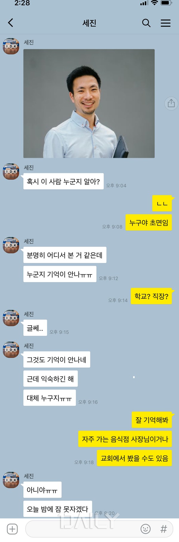 ºÐ¸í ³¸ÀÌ ÀÍÀº »ç¶÷Àε¥ À̸§ÀÌ ¹¹¿´´ÂÁö´Â °í»çÇÏ°í µµ´ëü ¾îµð¼ ¾î¶»°Ô ¸¸³ª°Ô µÈ »ç¶÷ÀÎÁö µµÅë ±â¾ïÀÌ ³ªÁö ¾ÊÀ» ¶§°¡ ÀÖ´Ù. ½É°¢ÇÑ °æ¿ì¿¡´Â ÇÑ ¹øÀÌ ¾Æ´Ï¶ó ¿©·¯ ¹ø ¸¶ÁÖÃÆ´Âµ¥µµ ±â¾ïÀÌ Á¦´ë·Î ³ªÁö ¾Ê´Â´Ù. ÀÌ·¸°Ô »ç¶÷À» Àß ±â¾ï ¸ø ÇÏ´Â ¹®Á¦´Â °Ë»öÀ» ÇØµµ ³ª¿ÀÁö ¾Ê´Â µ¥´Ù°¡ ÁÖº¯ »ç¶÷µéµµ ¸ð¸£´Â »ç¶÷À̶ó°í ÇÑ´Ù¸é Á¤¸» ´ä ¾øÀÌ º»ÀΠȥÀÚ¼ ²þ²þ ¾ÎÀ» ¼ö¹Û¿¡ ¾ø´Ù. ¸¸¾à ±× »ó´ë¹æÀÌ ¸ÕÀú ¸»À» °É¾î¿Â´Ù¸é ÃÖ´ëÇÑ ¹Ý°¡¿î ¾ó±¼·Î ÀλçÇϰí Á¶½É½º·´°Ô ´ëȸ¦ ½ÃÀÛÇÏ¸é¼ ´ëÈ ³»¿ëÀ¸·Î ÈùÆ®¸¦ ¾ò´Â °Íµµ ¹æ¹ýÀÌ´Ù.